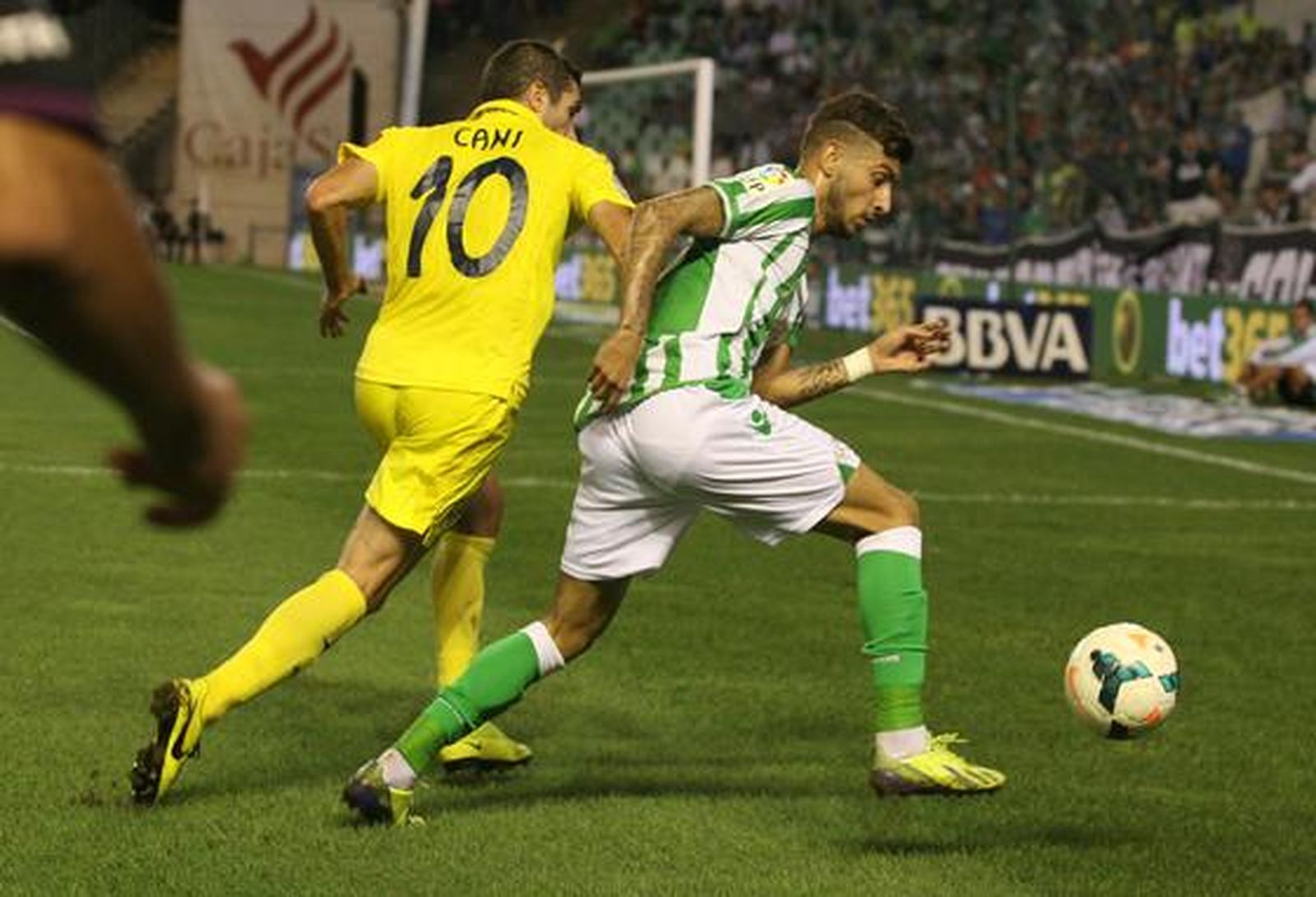 Con un césped que imposibilita jugar al primer toque, el equipo verdiblanco se encontró con problemas para superar la presión del Villarreal. Ni Verdú, que retrasaba su posición para entrar en contacto con el balón, ni Matilla, que intentó dar un paso adelante, o Igiebor, que se movía hacia el centro para dejar la banda a Dídac, pudieron romper líneas, mientras que Vadillo, quizá el más perjudicado por el césped, tampoco desbordó.