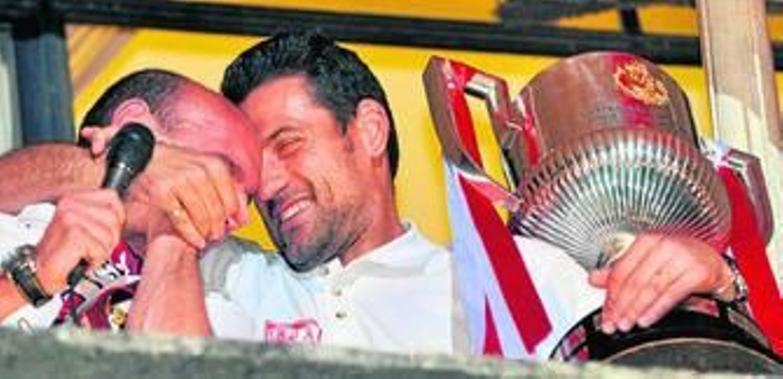 A la hora de coger el micrófono en el balcón principal del Ayuntamiento de Sevilla, Monchi rompía en lágrimas antes de efectuar una breve y emotiva alocución: "Sevillistas, esta Copa se la debíamos a alguien, a don Antonio Puerta. Ayer ganamos una Copa, pero hoy, otro de los nuestros ha empezado a ganar otra Copa, nuestro querido Sergio Sánchez. Va por él también esta Copa".