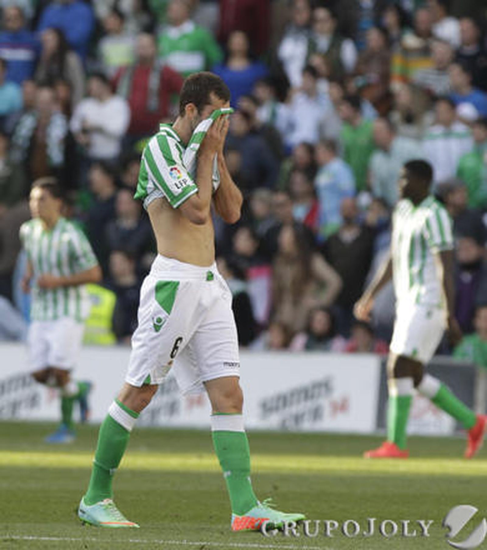 No es un prodigio de brillantez este Betis pero sí bastante digno, aunque sus desajustes atrás vuelven a barruntar ruina y Adán ya salva los muebles ante Sola en el minuto 10. Pero en general está mucho más lejos del Betis de Garrido que del Betis de Mel. Falta creación, sí, y remate, desde luego, pero la cara al partido no la pierde hasta que se la parte un doble error arbitral.