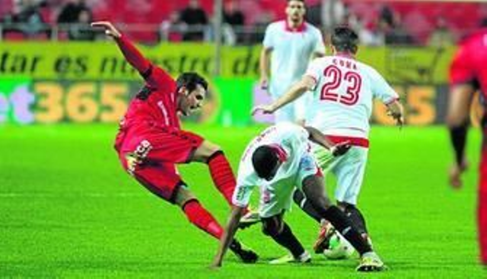 Al Sevilla, sea cual sea la pareja de centrales o la estructura de su centro del campo, le hacen daño con muy poquito. Al Mallorca le bastaron un par de centros inocuos para darle la vuelta al marcador. Míchel plantó en el campo el equipo con un nítido 4-2-3-1 en el que Maduro y Kondogbia, elásticos y dinámicos, se repartieron las tareas de la contención y la presión adelantada. El Sevilla apenas sufrió durante buena parte del partido, pero cuando más tranquilo estaba, un centro desde la derecha con Botía descolocado, Cala muy blando y Coke contemplativo permitió el empate. Otro centro a la frontal del área, el terreno sagrado de los centrales, fue despejado hacia atrás por Cala y Alfaro aprovechó el regalo. Ayer sí primaron los errores individuales en defensa, pero éstos también son producto de un mal escalonamiento en los movimientos defensivos, de una mala lectura colectiva.