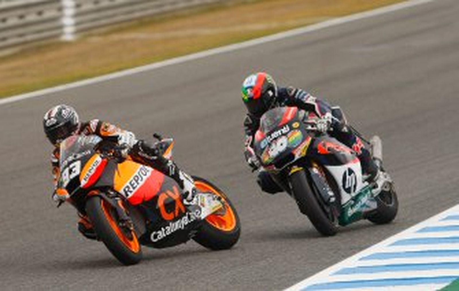 En cuanto a la carrera en sí, Pol comentó que iba "bastante cómodo en la cola del grupo" y no quería arriesgar, pero cuando vio que comenzaban a caer las primeras gotas de agua y estaban "al límite de los dos tercios", decidió tirar y jugársela. "Aunque luego me ha pasado Marc, creí que corría muchos riesgos y que veinte puntos eran buenos, pero por fortuna al detener la carrera en ese momento contaba la vuelta anterior y me he llevado el triunfo, lo más grande", manifestó el vencedor de Moto2. "Ahora toca celebrarlo, pero también empezar a pensar en Estoril, donde intentaremos volver a repetir los podios de Catar y Jerez", sentenció el piloto de Kalex.