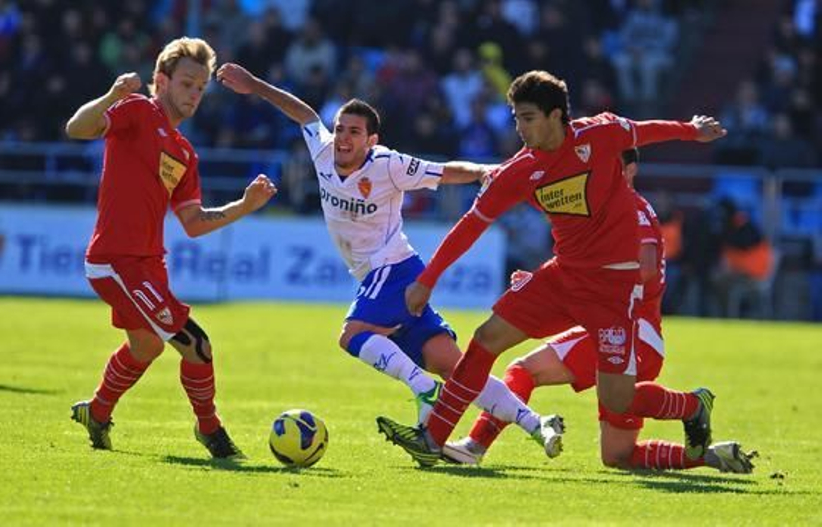 El sistema defensivo es un apartado que merece un serio análisis en el Sevilla. Cuando se pensaba que con Maduro y Medel por delante el cuerpo técnico había tocado la tecla mágica, el Zaragoza se encargó de demostrar que no es oro todo lo que reluce. Míchel mandó al chileno a robar arriba, despobló la zona de cierre de ese 1-4-1-4-1 bajo el que ahora se mueve el Sevilla y Jiménez lo que hizo fue precisamente acumular gente alrededor de Maduro. Como el holandés tampoco ha vuelto muy sobrado físicamente tras el parón, pues desde el minuto uno la defensa del Sevilla empezó a sufrir, tanto por el centro como en los metros de Cicinho, completamente perdido ante cada acometida de Montañés.