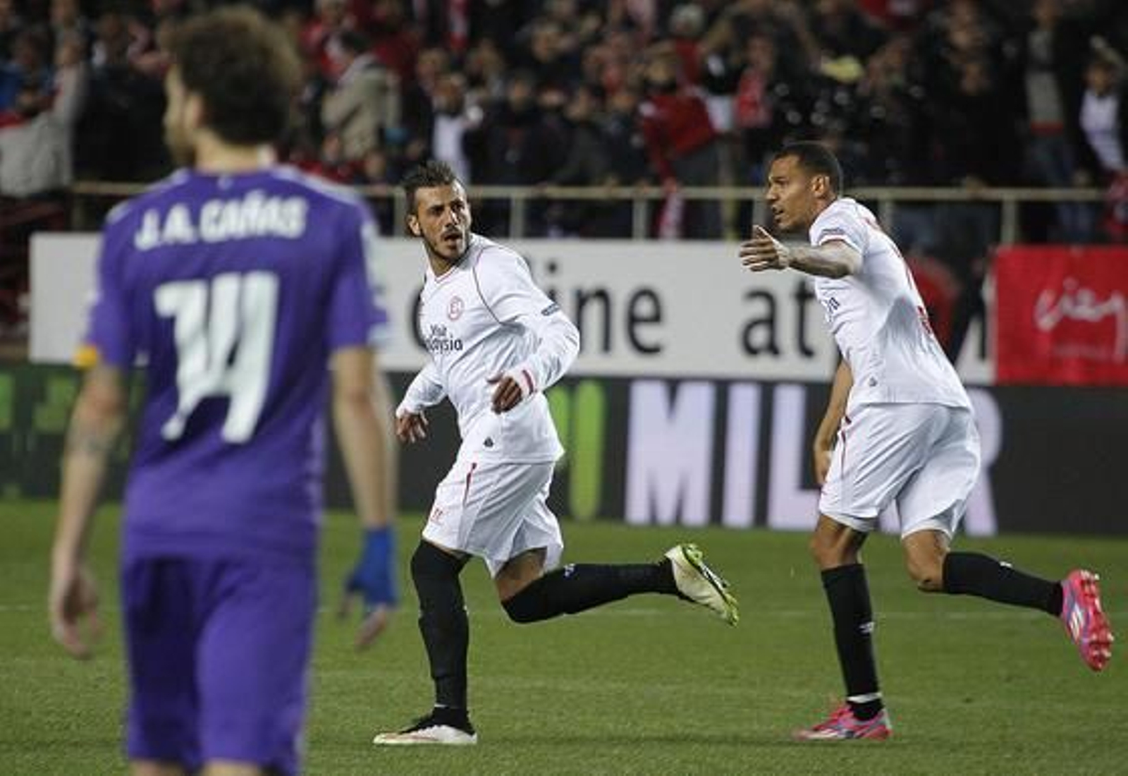 Del gol de Bacca al gol de Diogo. El Sevilla entreabrió las puertas de la esperanza demasiado tarde, tanto en la ida como en la vuelta. Aquel tanto postrero del colombiano llenó a reventar el Sánchez-Pizjuán y la espectacular respuesta del sevillismo apenas tuvo el premio del golazo del portugués. Apenas cinco minutos de emoción hubo entre ese disparo precioso del lateral y el momento en que Martínez Munuera hizo sonar su letal silbato. El Sevilla y el sevillismo gastaron la bala de la comunión perfecta, que quedó en una frustración colectiva de las que ya no se recordaban.