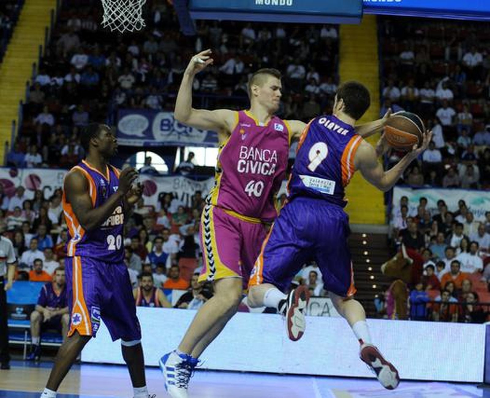 Claver, haciendo daño en el poste bajo, y el acierto inicial de un activo Newley mantenían al cuadro taronja en el choque a pesar de las nueve pérdidas de los suyos en el primer cuarto. Una barbaridad que, sin embargo, no supo aprovechar el Banca Cívica, que sólo finalizó el primer cuarto con cinco puntos de ventaja: 19-14. Pero el conjunto sevillano había defendido a la perfección, forzando muchas de esas pérdidas visitantes y no había hecho más que poner la semilla de lo que vendría en un segundo acto para enmarcar