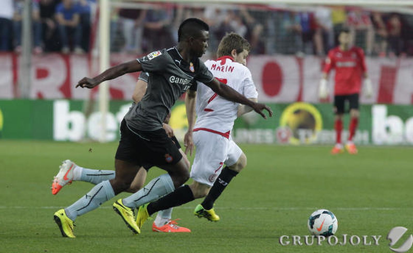 No se desanimó el Espanyol y siguió a lo suyo, tejiendo juego en el mediocampo de los sevillistas, que se pertrecharon con ese 4-4-2 que ayer eligió Unai: Trochowski como falso extremo derecho, Iborra más anclado, M'Bia tratando de cambiar de ritmo y Vitolo partiendo desde la izquierda, pero con libertad para aparecer por todo lo ancho. Así, el canario irrumpió por la derecha en un saque de banda de Figueiras para servir un buen centro al segundo palo. Gameiro controló con el pecho y tal como bajaba el cuero, conectó una seca volea junto al palo derecho. Era el último minuto de la primera parte y parecía que ese 2-0 sofocaba ya al animoso Espanyol, que un cuarto de hora antes pudo empatar con una falta directa que Simao envió a la cepa del palo izquierdo de Beto.