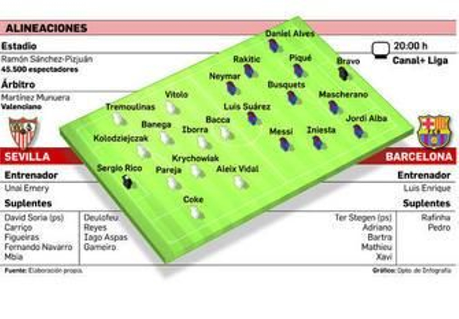 Varios registros a los que acudir con futbolistas en un momento dulce como Banega (que vuelve tras cumplir sanción) y el valor de un bloque como colectivo dan a los de Emery ciertas esperanzas de competir ante un rival que se puede convertir en una metralleta ofensiva en cualquier momento. La duda en cuanto al rendimiento del Barça estará en si esa presión que tiene por no ceder terreno ante el Real Madrid en la lucha por el título de Liga se traducirá en ansiedad (difícil para un vestuario tan habituado a la altísima competición) o en un efectivo empeño en marcar las diferencias, que es lo que se teme por Sevilla.