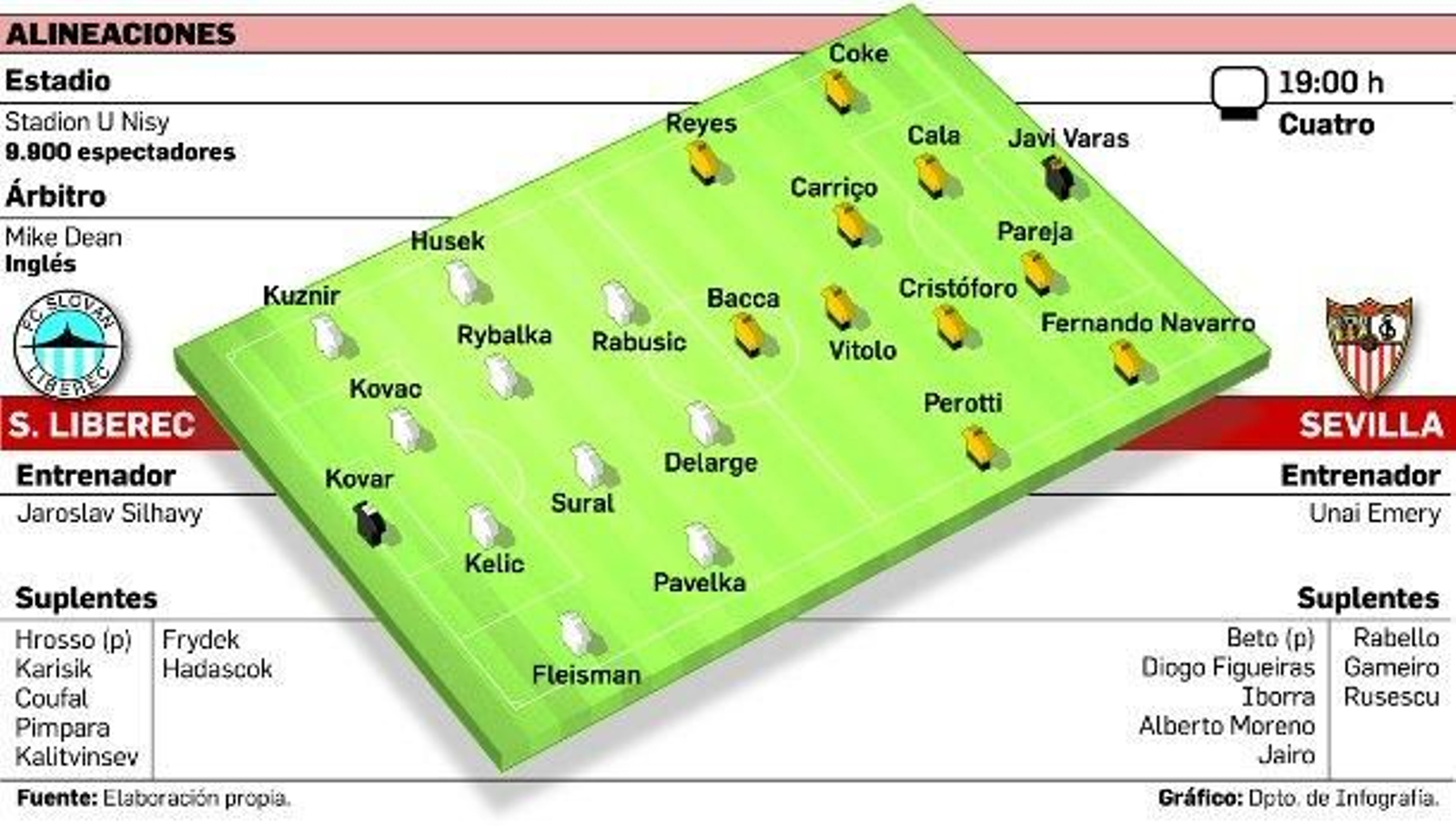 El Slovan Liberec tratará de imponer un juego físico, ayudado por las reducidas dimensiones del terreno de juego. Ya hace seis años, en el precedente entre ambos contendientes, los checos llevaron el agua a su molino y con su fútbol al límite del reglamento, una férrea disciplina táctica y mucha intensidad, arrancaron un empate a cero a aquel Sevilla de Juande que era vigente campeón de la Copa de la UEFA. Luego, unos meses más tarde, los sevillistas revalidarían su título en Glasgow, pero en Liberec no jugaron ni mucho menos un buen partido.