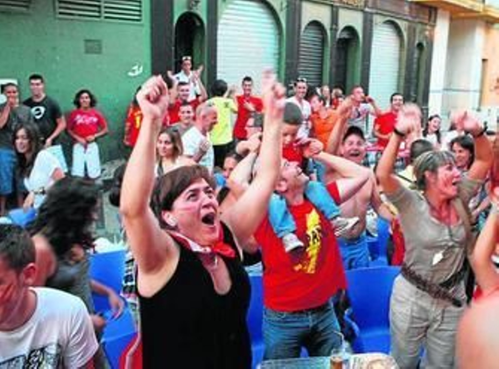 Juan Ismael Barroso, responsable del café bar Tentempié, tiene mucho trabajo. No para de servir consumiciones, bocadillos y montaditos. Curiosamente allí trabaja Valeria Guerrero, una joven lisboeta enfundada en una elástica portuguesa. "Lo llevo un poco mal", confiesa segundos después del gol de Villa, en el minuto 63.