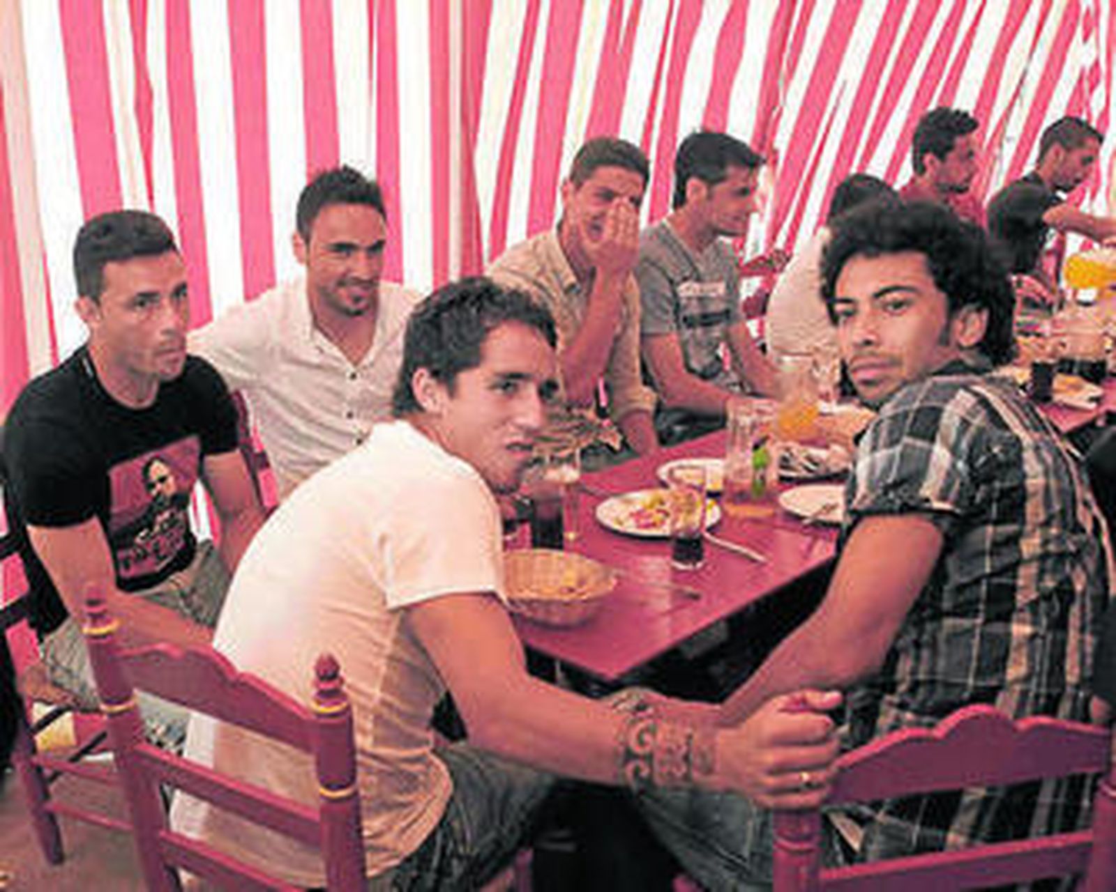 Hace años era habitual ver a los jugadores, directiva y cuerpo técnico béticos por la Feria. Eran otros tiempos, en todos los sentidos, hasta que en 2006, con los malos resultados deportivos y los problemas extradeportivos la tradicional estampa de la comida de hermandad en la caseta La niña bonita pasó a la historia... hasta ayer, cuando la plantilla volvió a reunirse en el real para disfrutar de un merecido premio.