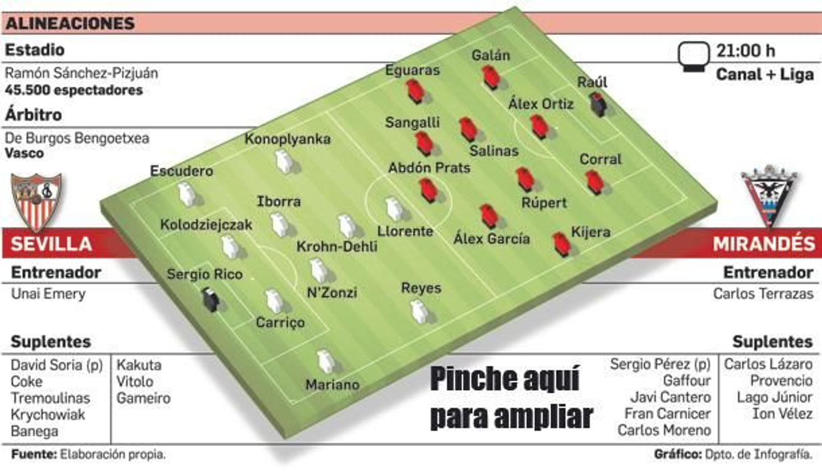 El Sevilla recibe al Mirandés con la única idea de encauzar la eliminatoria para poner un pie en las semifinales de la Copa Día para los necesitados N'Zonzi, Konoplyanka o Llorente.