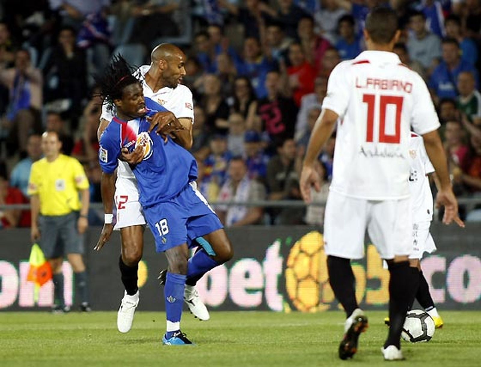 El Getafe, que salió algo frío, reaccionó, volvió a lo suyo y logró empatar con un fuerte disparo de Pedro León, pesadilla toda la noche, tras una descoordinación defensiva. Sin embargo, los de Antonio Álvarez se agarraron de nuevo al talento de Adriano, Kanoute y Luis Fabiano y el brasileño puso por delante al Sevilla con un gol para verlo mil veces repetido. Y ahí murió el Sevilla, porque Míchel sí mejoró a su equipo con los cambios y Manu, en medio del espectacular pim-pam-pum, firmó otro gran gol. Pero no quedaría ahí la cosa, porque la defensa, con Escudé desgañitado, no se bastaba para frenar el aluvión azulón. La expulsión del hipermotivado Kanoute lo complicó todo y encima Negredo perdió un balón imperdonable con su equipo tan asfixiado.