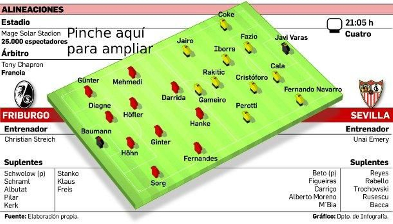 El Sevilla, ya clasificado, busca el liderazgo del grupo en Friburgo con un triunfo, aunque le basta un punto.