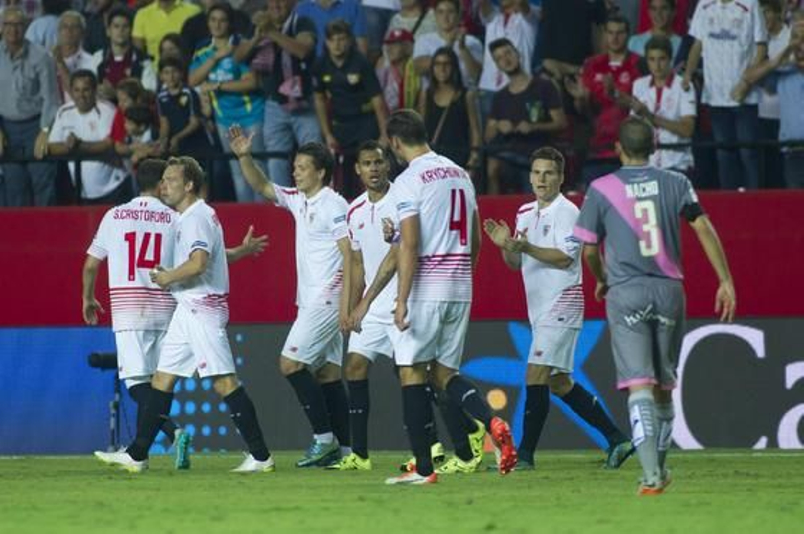 En el octavo partido oficial de la temporada, Kevin Gameiro consiguió por fin su primer gol en juego. Anteriormente, había marcado desde el punto de penalti ante el Barcelona en la Supercopa y frente al Borussia Mönchengladbach. Al igual que Konoplyanka, ha marcado en las tres competiciones, si bien su participación ha sido hasta ahora mucho más activa que la del ucraniano, tanto en titularidades y minutos como en juego. El tanto que marcó al Rayo Vallecano viene a refrendar el buen trabajo que venía haciendo el francés en este inicio de curso, el mejor desde que llegó al Sevilla.