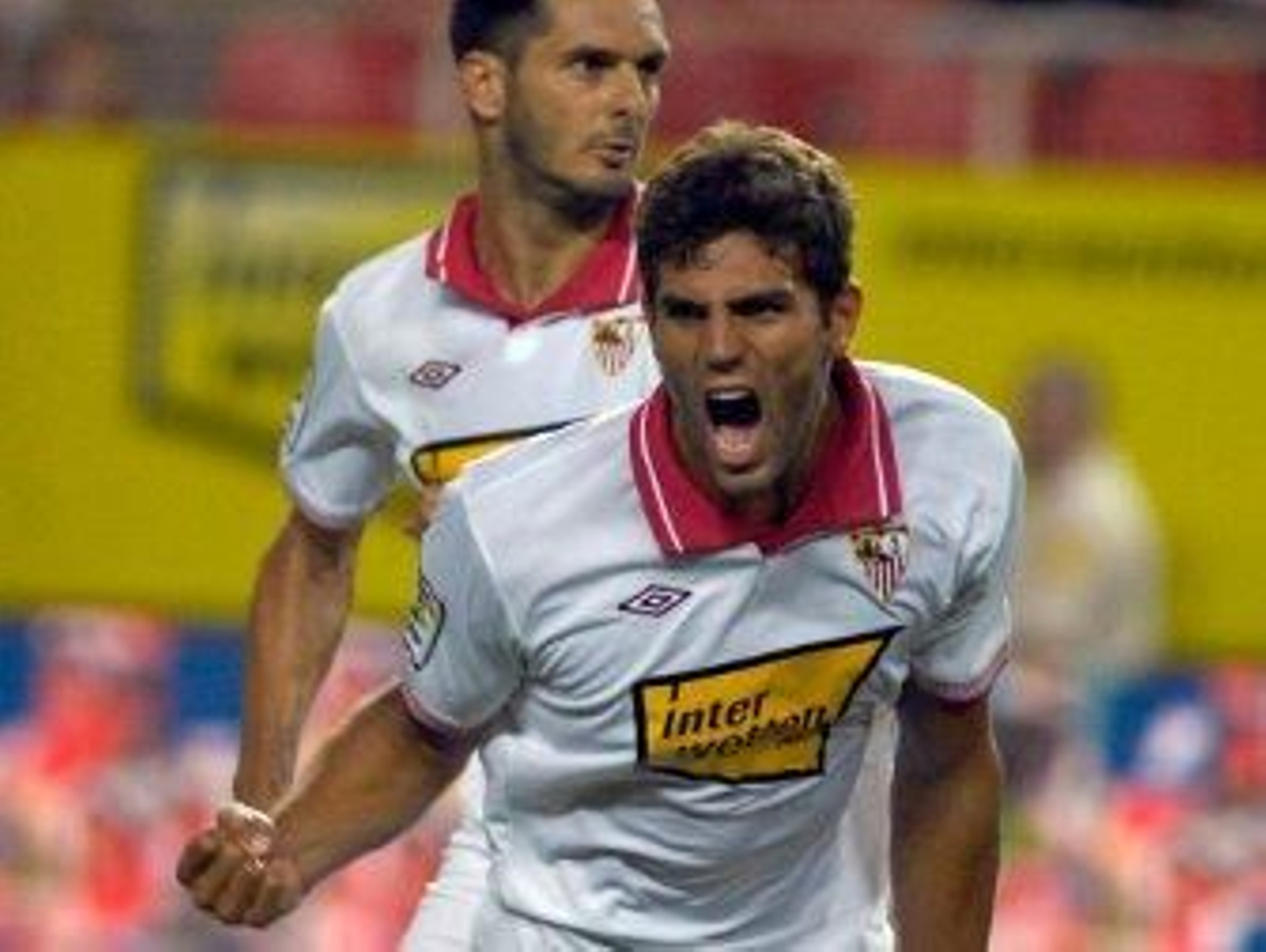 Son los dos extremos, nunca mejor dicho por la posición que ocupan en el campo, de un Sevilla que se manejó con muchos de los elementos que ya estaban en la pasada campaña, aunque cambiado de roles en muchos casos. Así, en el equipo inicial sólo entraban Diego López y Cicinho, el portero y el lateral derecho, respectivamente, como futbolistas llegados durante este periodo de mercado estival. Sin embargo, la idea del equipo variaba desde el mismo momento en el que Míchel apostaba por un centro del campo con tres integrantes, escalonados muchas veces pero con Medel, Rakitic y Trochowski. En teoría, ahí debería salir fortalecido el conjunto, pues la sala de máquinas está más poblada y los espacios a ocupar son menos al estar, supuestamente, los tres más cerca. Eso se supone sobre el papel, en el trabajo durante la semana en la ciudad deportiva, pero a la hora de la verdad al Sevilla le iba a costar mucho controlar esa zona ancha, ya que Trochowski, tal vez el que tenía la tarea más ingrata de presionar la salida del balón del rival, se quedaba descolgado y las distancias volvían a sobrepasar a un Medel muchas veces desbordado por el eje.