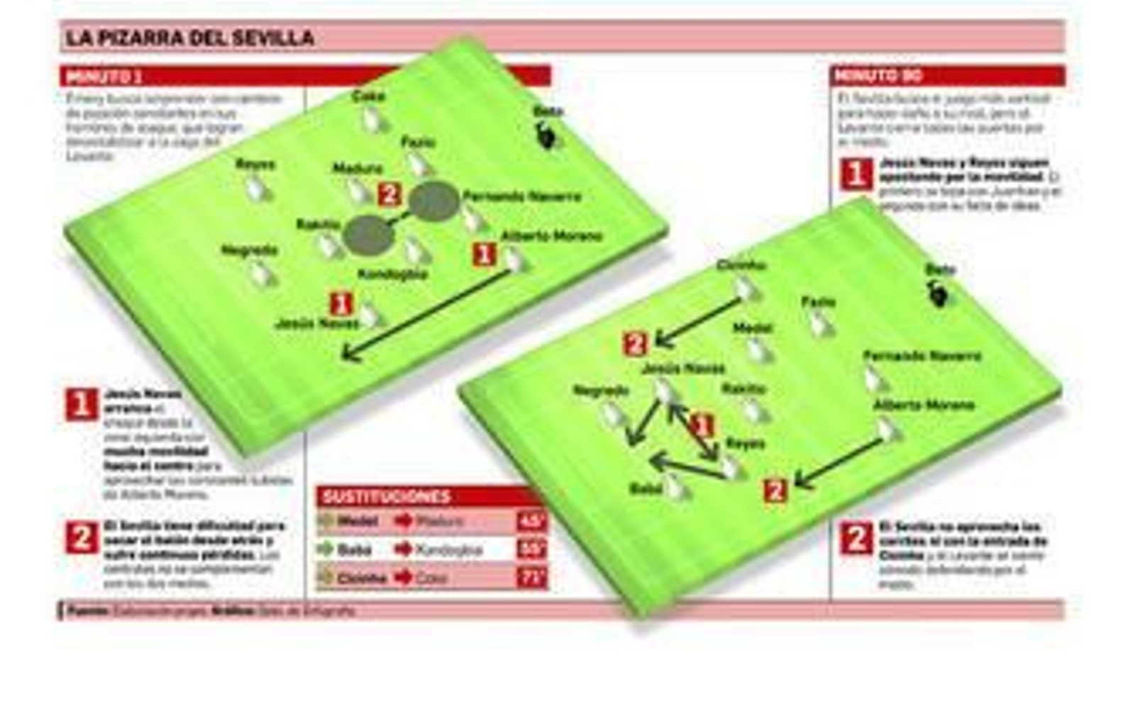 El Levante volvió a fabricar una trampa en la que el Sevilla cayó sin entender que el camino buscado no era el adecuado. Buscó los espacios interiores cuando nunca existieron y posibilitó que las pérdidas dieran vida a un rival que sólo respiraba con ellas. Los medios, además, nunca supieron avanzar con comodidad.
