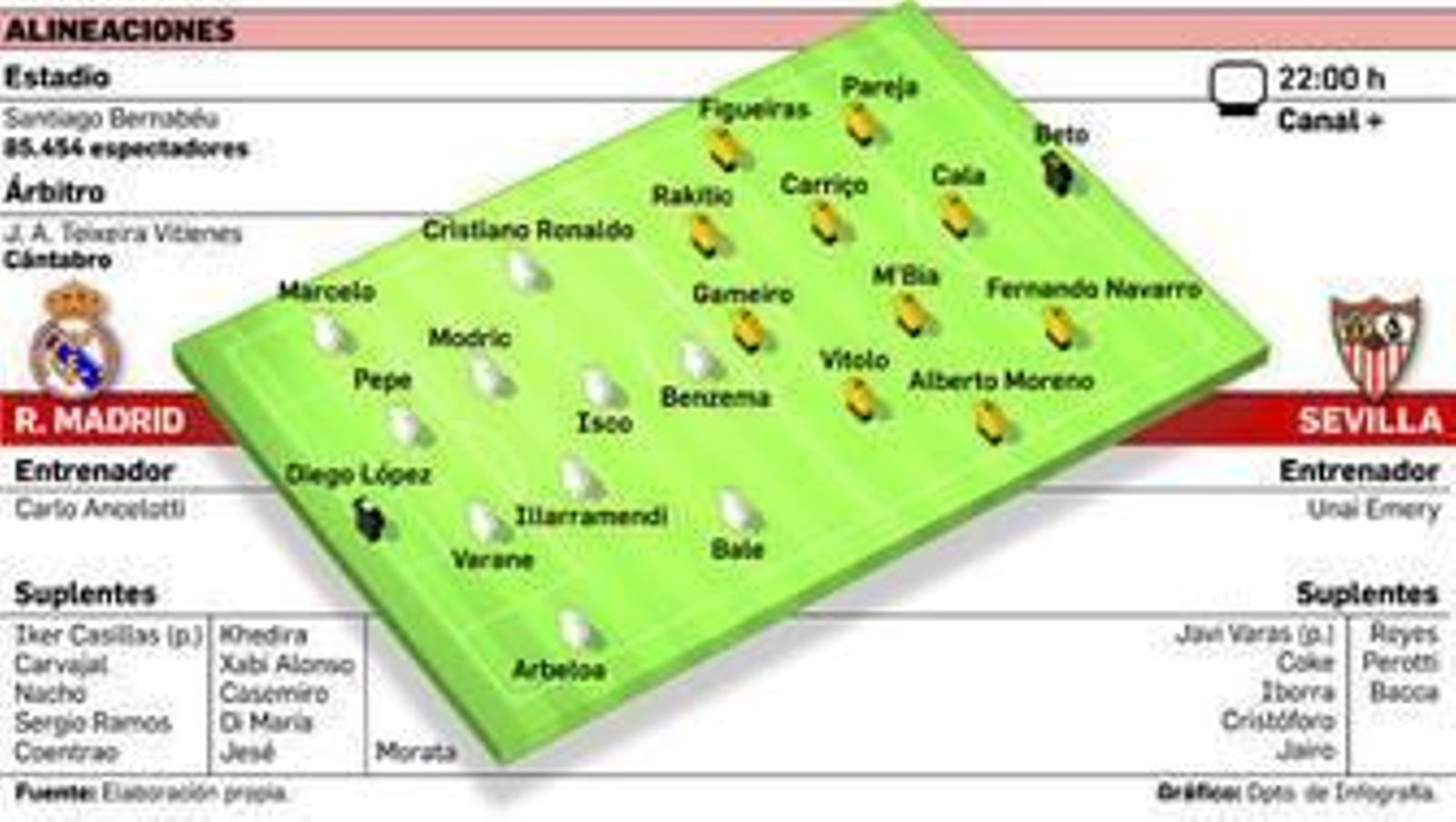 El Sevilla acude al Santiago Bernabéu en un buen momento anímico y con la intención de aprovechar las dudas del Madrid. Incógnitas sobre el once y el dibujo.