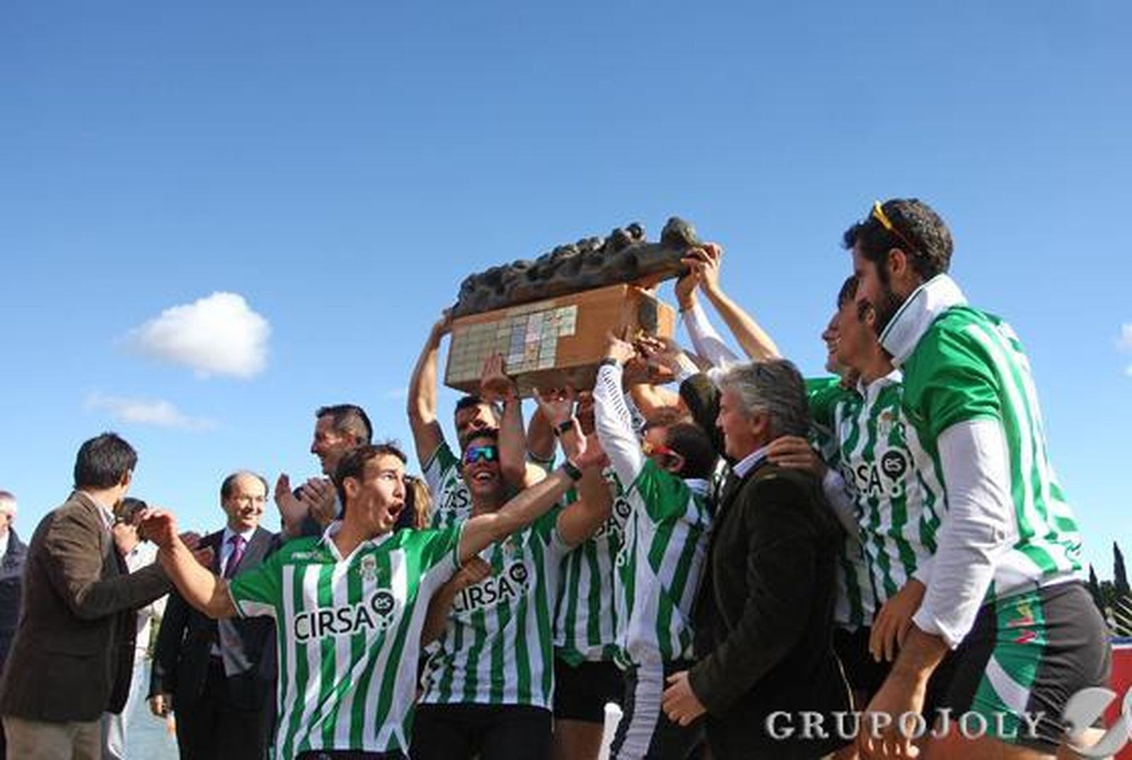 Antonio Guzmán, Marcelino García Cortés, Jaime Lara, Emilio Fernández, Noé Guzmán, Marco Sardelli, Javier García, Carlos Molina y Tomás Jurado, al timón, dejaron enmarcados sus nombres en la historia de la competición como vencedores de una prueba digna de la pasión con la que la viven sus protagonistas, compañeros y amigos que se cambian de bote por un día para defender sus respectivos colores futbolísticos. Ellos le dieron al Betis su victoria número 16 en la prueba, cuyo palmarés, que domina el Sevilla con 30, van recortando poco a poco los verdiblancos en los últimos años. Pero los perdedores no van a quedar en el olvido. Eduardo Murillo, Manuel Morón, Beltrán Hidalgo, Juan García, Jaime Canalejo, Álvaro Romero, Julio Casielles, Patricio Rojas, con José Manuel Pacheco como timonel, también pueden estar orgullosos de la demostración de amor a un deporte y a unos colores. Cuando el Betis llegó mandando a la decisiva curva de Chapina y se puso con bote y medio de ventaja todo parecía sentenciado. La ley física de la superioridad de vatios en la remada se había unido a la experiencia de un bote que aúna veteranía y juventud en sus medidas justas para hacer un barco campeón, un señor bote que está tiñendo de verdiblanco el palmarés. La suerte estaba echada, pero el ocho del Sevilla, rabioso y hambriento, se rebeló, se pegó con ansia a la orilla de Triana para resguardarse del viento noroeste y, en una exhibición de casta, recortó distancia hasta dejarla en apenas un cuarto de bote, dándole a la prueba un final inolvidable, épico, apoteósico.