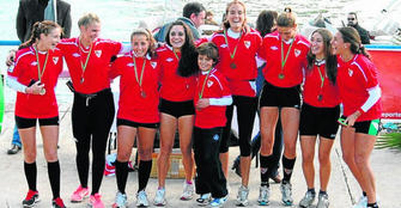La regata femenina deparó la gran sorpresa de la jornada, puesto que el Sevilla se impuso contra todo pronóstico al Betis después de una fulgurante remontada. El bote blanquirrojo, formado por Macarena Llano, Nuria Barrios, Lourdes Lucio, Candela Bandrés, Julia Muñoz, Adoración Guzmán, Silvia Morán, Odra Quesada y Ramón Somalo (timonel) se impuso con 3.41,09, cinco segundos menos al verdiblanco, que formó con Camila Vargas, Cristina Jiménez, Sara Moreno, Elena Fernández, Estela Díaz, Patricia Jaenes, Míriam Borrego, Sara Rus y Carmen Civera (timonel). Las béticas mandaron hasta los 250 metros, pero remontaron las sevillistas, entrenadas por Mirson Camadro.