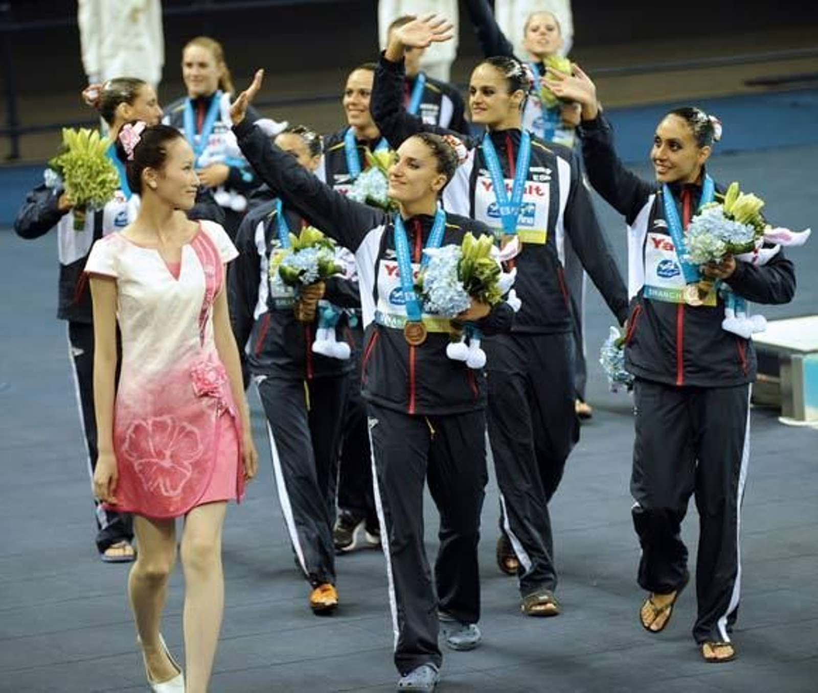 Gijón e Irene Montrucchio fueron las dos suplentes de este conjunto que saltó a la piscina con Clara Basiana, Alba Cabello, Marga Crespí, Thais Enríquez, Paula Klamburg, Cristina Salvador, Ona Carbonell y Andrea Fuentes.