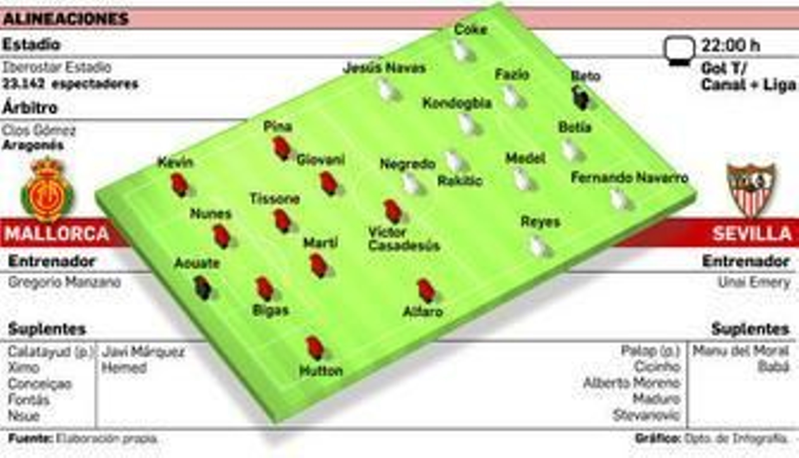 Sólo el Celta y el colista presentan peores números a domicilio que el Sevilla, lo que, curiosamente, contrasta con las nulas prestaciones del Mallorca ante su público. Los baleares llevan seis meses sin ganar en este siempre desangelado estadio, aunque de la mano de Manzano quieren recuperar, aunque sea una pizquita, algo de aquel son que los bermellones dibujaron precisamente con el entrenador jiennense cuando lograron ser el equipo más seguro en casa de toda Europa la campaña anterior al desembarco del técnico en Nervión.