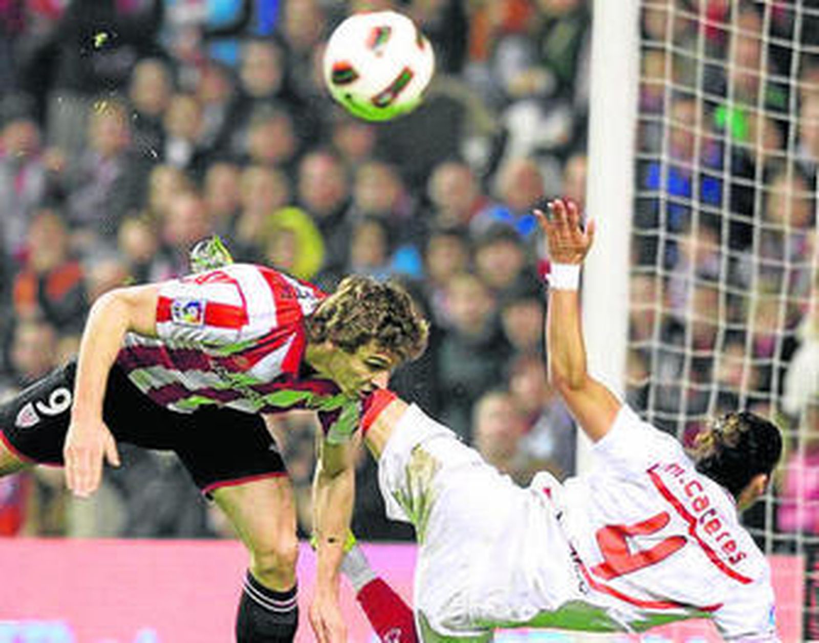 Debe ser una auténtica paliza jugar frente a Llorente un rato: imagínense 100 minutos. El portento riojano, máximo goleador de este Athletic que ha cobrado ventaja sobre el Sevilla, goal average incluido, en su pugna por Europa, no vio puerta ayer, pero fue un incordio que la defensa del Sevilla supo frenar. Fazio, otro gigante con los mismos 1,95 metros de altura, fue el encargado de saltar y saltar junto a Llorente, con faltas, codos y fricción constante entre ambos, y realizó un digno papel, pero acabó siendo protagonista negativo del Sevilla. Su autogol, en la única jugada en la que se despistó ante el movimiento de De Marcos dejando pasar el balón, fue un infortunio más de este equipo al que la suerte no está respaldando en momentos clave. Se lesionó Negredo, Luis Fabiano también con una distensión de rodilla más que preocupante y Kanoute se convirtió en el mejor argumento, pero tampoco estuvo fino. Hasta tres ocasiones claras falló, algo inhabitual en él.