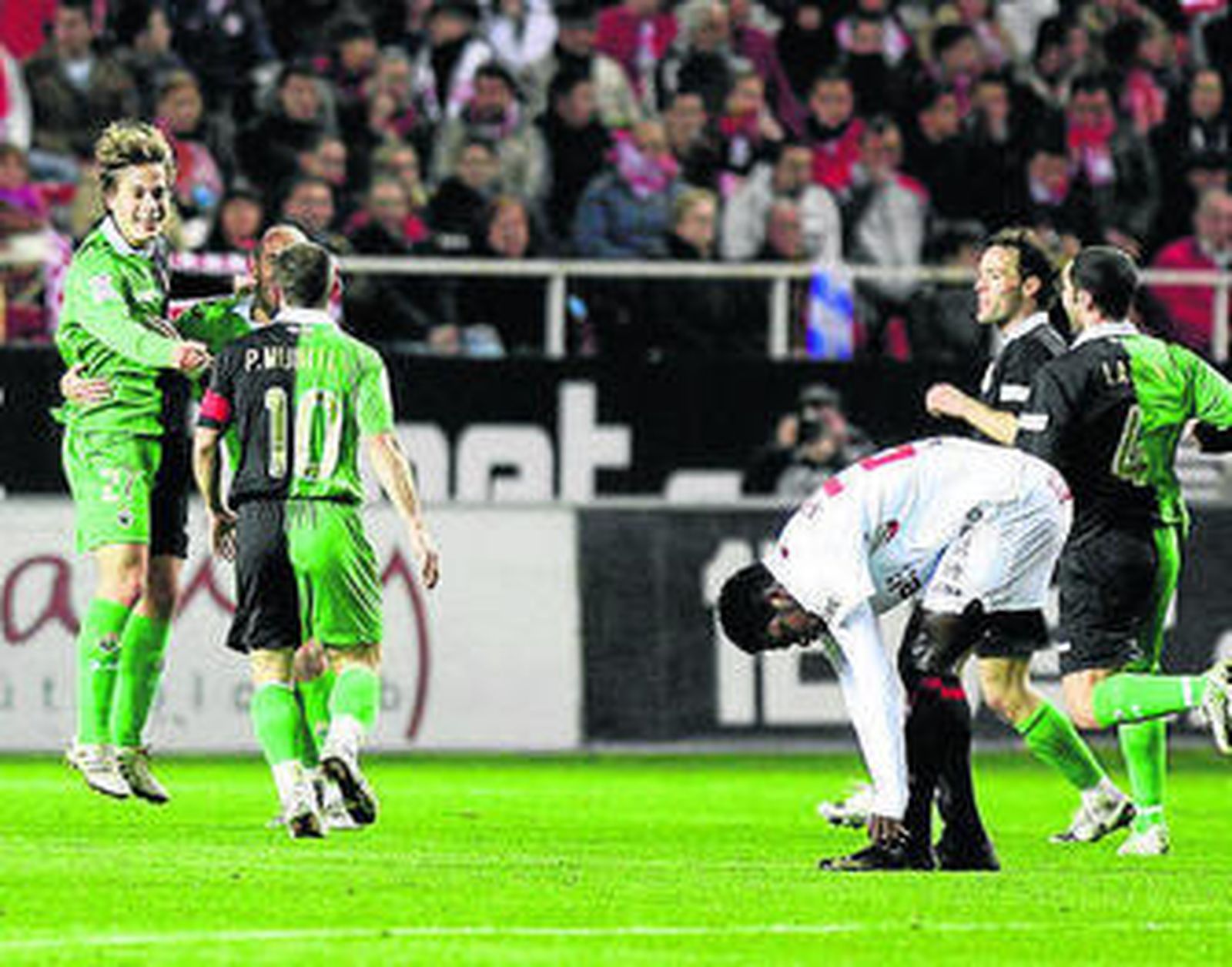 Mientras, en el lado opuesto, el joven Canales se limitaba a liderar los contragolpes del Racing buscando constantemente la espalda de los defensores demostrando una perfecta sintonía con Munitis. El canterano resultaba un incordio para los sevillistas por su movilidad por la zona media y su caída a las bandas. Con el Sevilla iniciando su aventura al ataque descontrolado, Canales era ya uno más en la ayuda a los medios en la presión.