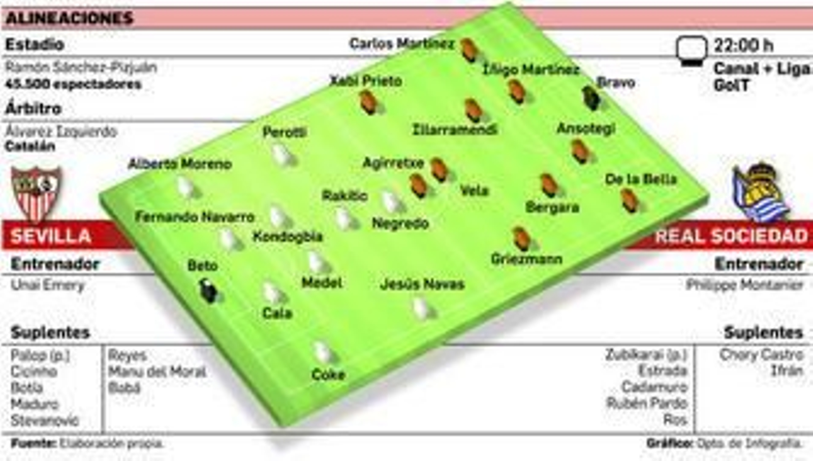 El Sevilla se fía a la respuesta de su once para batir a la Real y seguir con opciones de meterse en Europa.