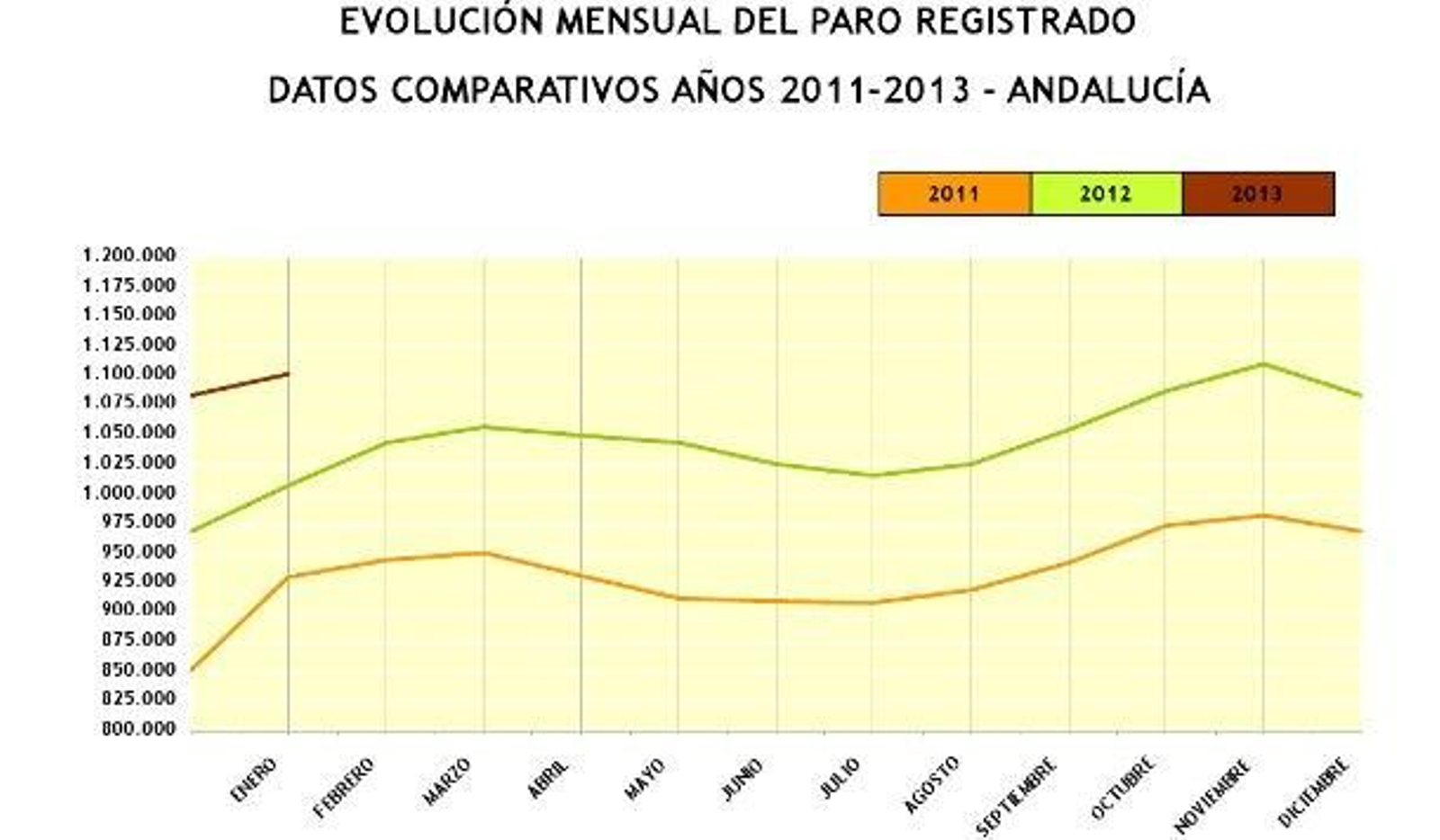 El número de parados registrados en las oficinas del Instituto Nacional de Empleo (INEM) en Andalucía aumentó en el mes de enero de 2013 en 18.569 personas, lo que supone un incremento del 1,71 por ciento respecto al mes anterior, según los datos facilitados este lunes por el Ministerio de Empleo y Seguridad Social, con lo que se alcanza los 1.102.398 desempleados en Andalucía.