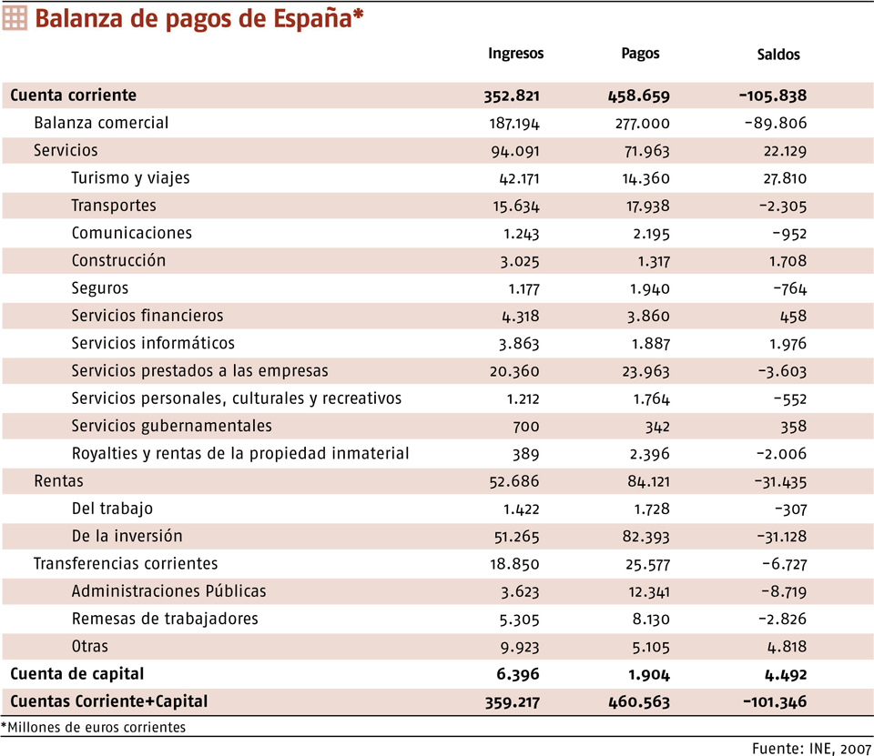 La Balanza de Pagos española en 2008