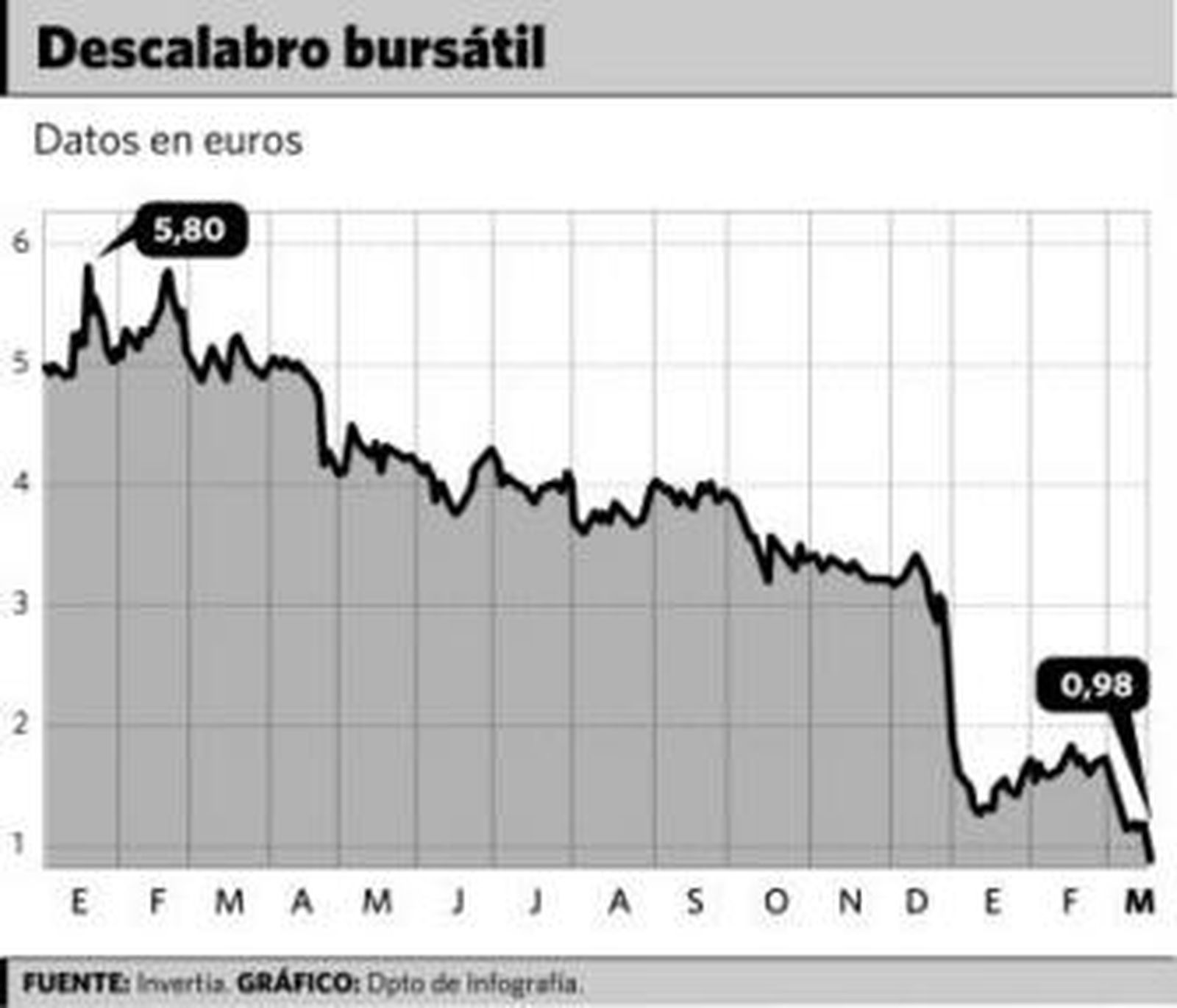 La acción de la inmobiliaria pierde la cota del euro y ya vale menos de la mitad de lo que piden Portillo y Nozaleda