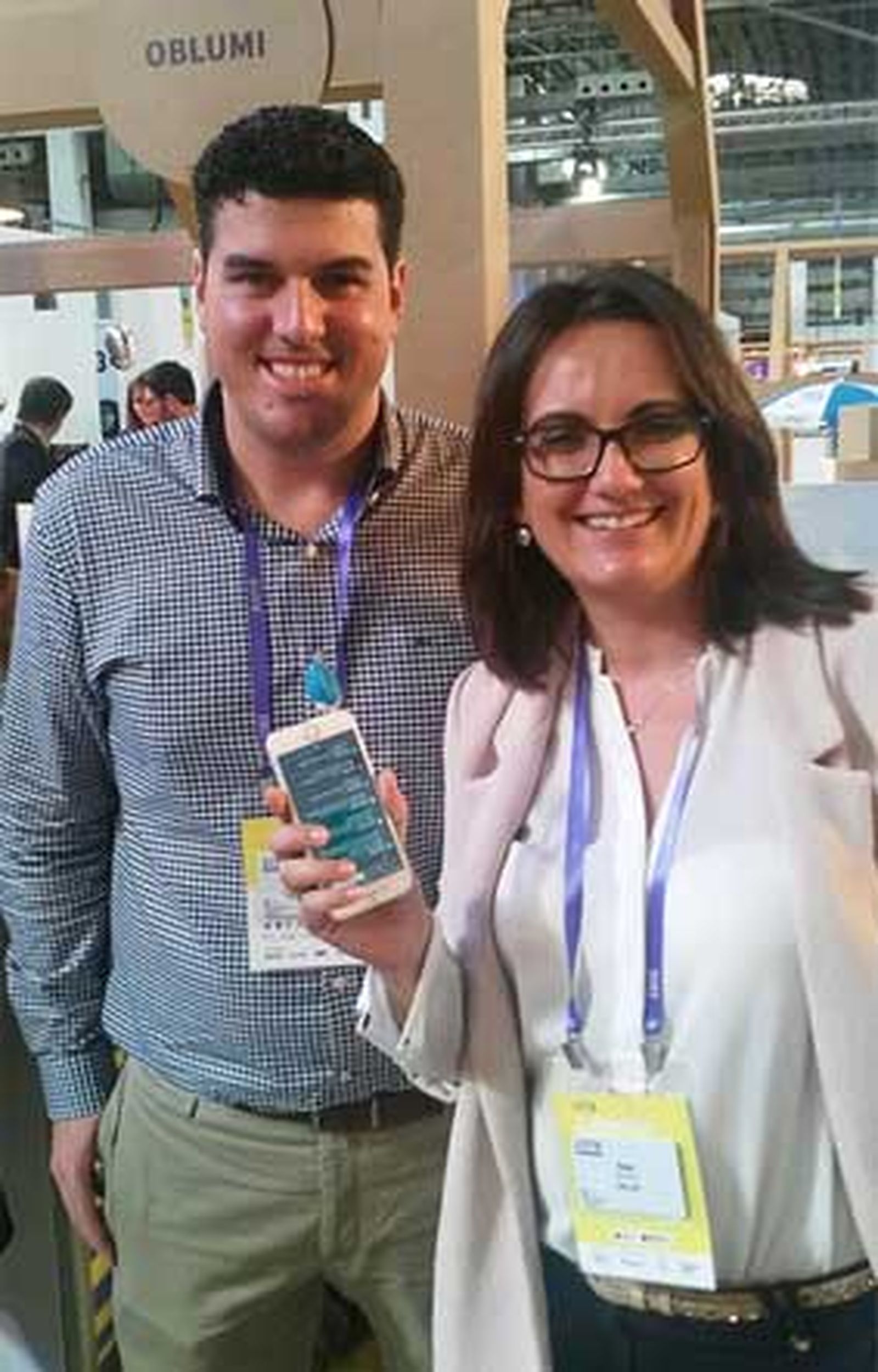 Otra startup con expositor en Montjuic es la sevillana Oblumi. También aplica a la salud su invento, pero en este caso no hay relación con la realidad virtual y sí con la vida cotidiana. Su producto es tan simple -y a la vez tan complejo- como un termómetro digital que funciona por infrarrojos -muy pequeño, "el más pequeño del mercado", dicen sus responsables- que se conecta directamente al móvil. Está pensado para tomar la temperatura a bebés (y a líquidos como la leche o el agua) pero de forma inteligente. El termómetro-móvil no sólo almacena la información (con lo que el pediatra puede saber la evolución exacta de la temperatura) sino que permite crear perfiles para compartir con familiares o cuidadores estos datos -o enviarlos por Whatsapp- y aconseja la dosis de medicación necesaria (relacionada con la fiebre) según el peso y la edad del niño.