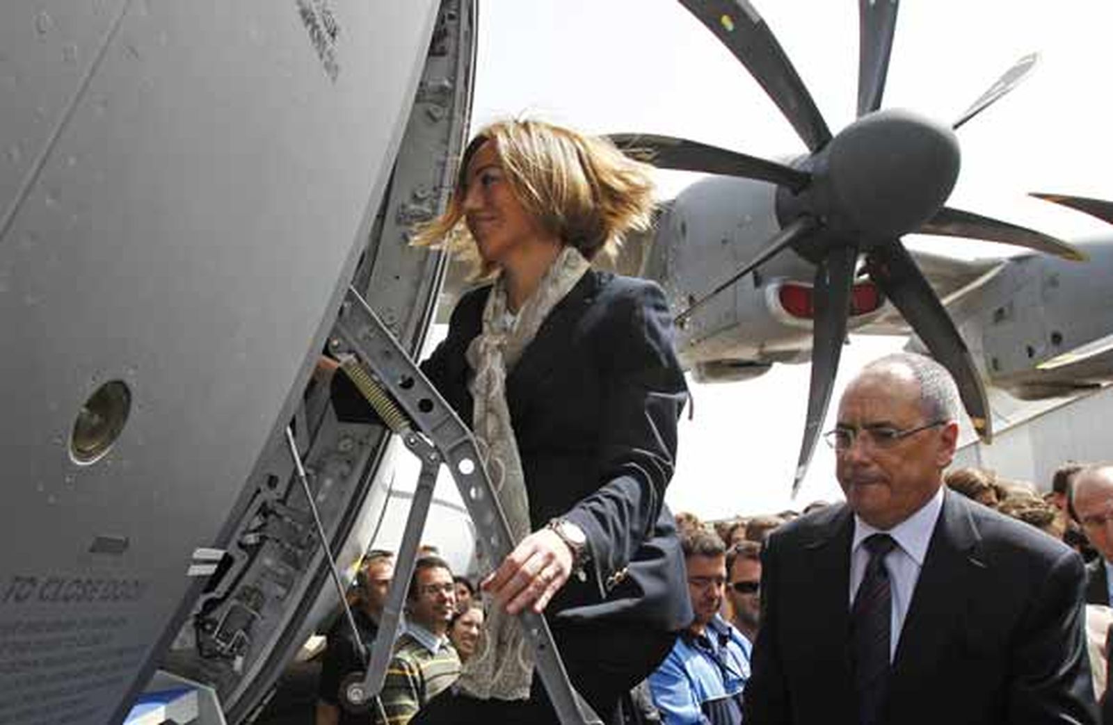 La ministra acudió a Sevilla para presidir el acto de la firma de la modificación del acuerdo entre los siete países (Alemania, Francia, España, Reino Unido, Turquía, Bélgica y Luxemburgo) que forman la Organización Conjunta de Cooperación en Materia de Defensa (OCCAR) para el desarrollo del programa de este avión de transporte militar, construido por Airbus Military.