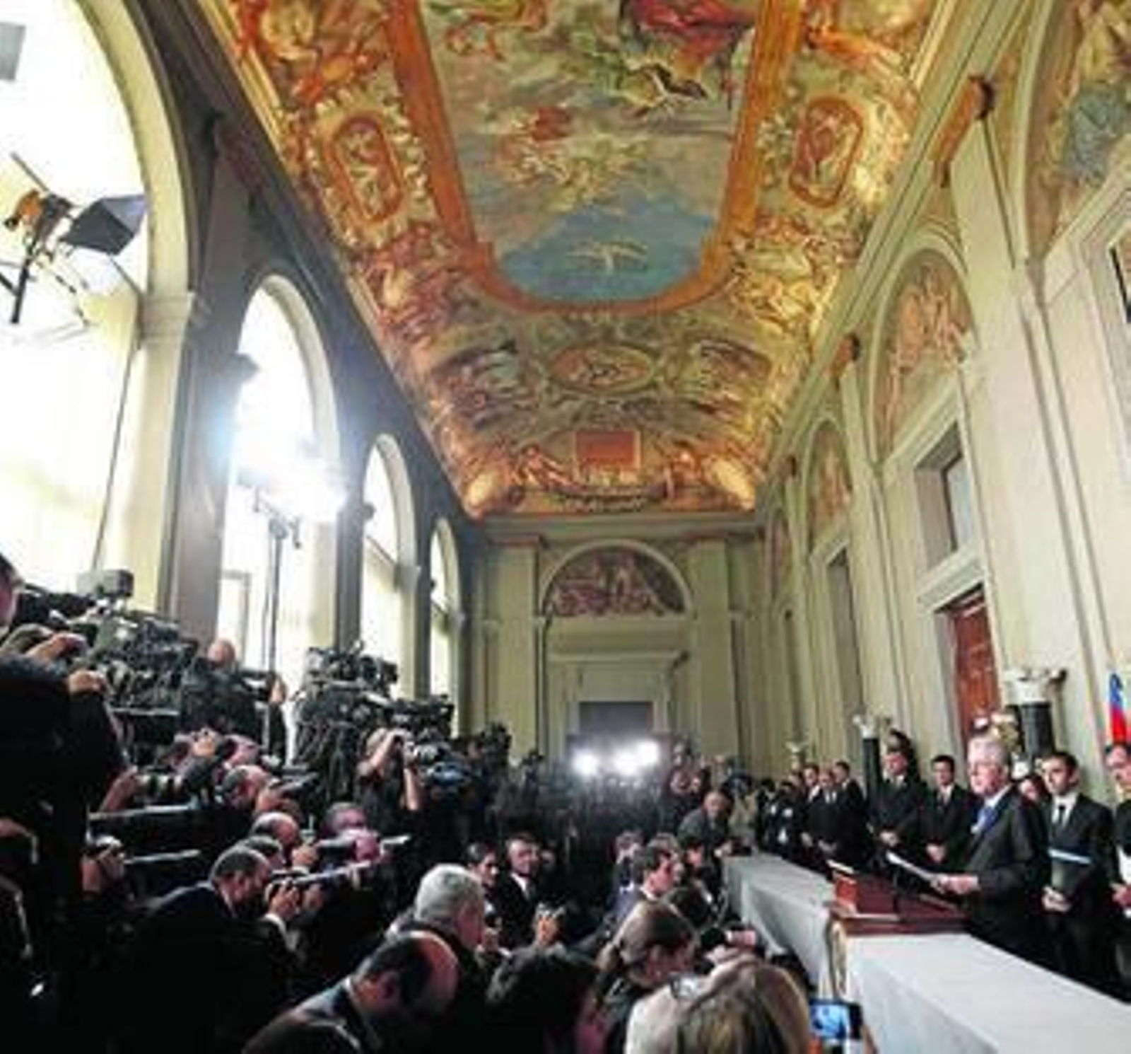 El periódico de izquierdas se refería a la situación excepcional que vive Italia, la tercera economía de la Eurozona, tras Alemania y Francia, y miembro destacado del G8, cuya economía está bajo la lupa de la troika internacional integrada por expertos de la Comisión Europea, el FMI y el Banco Central Europeo (BCE), debido a las desbocadas cuentas públicas del país transalpino.