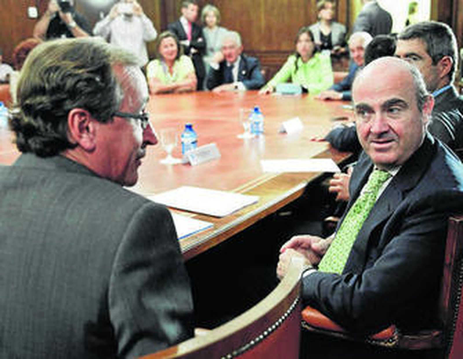 Mientras, el ministro de Economía, Luis de Guindos, insistió ayer en que el rescate del sistema financiero acordado el año pasado con la Unión Europea "ha funcionado" y que continuará su desarrollo "con normalidad", lo que significa que su vigencia "expirará a final de año". Así lo explicó en declaraciones a la prensa tras reunirse durante algo más de una hora en el Congreso con los diputados y senadores populares de la Comisión de Economía y Competitividad.