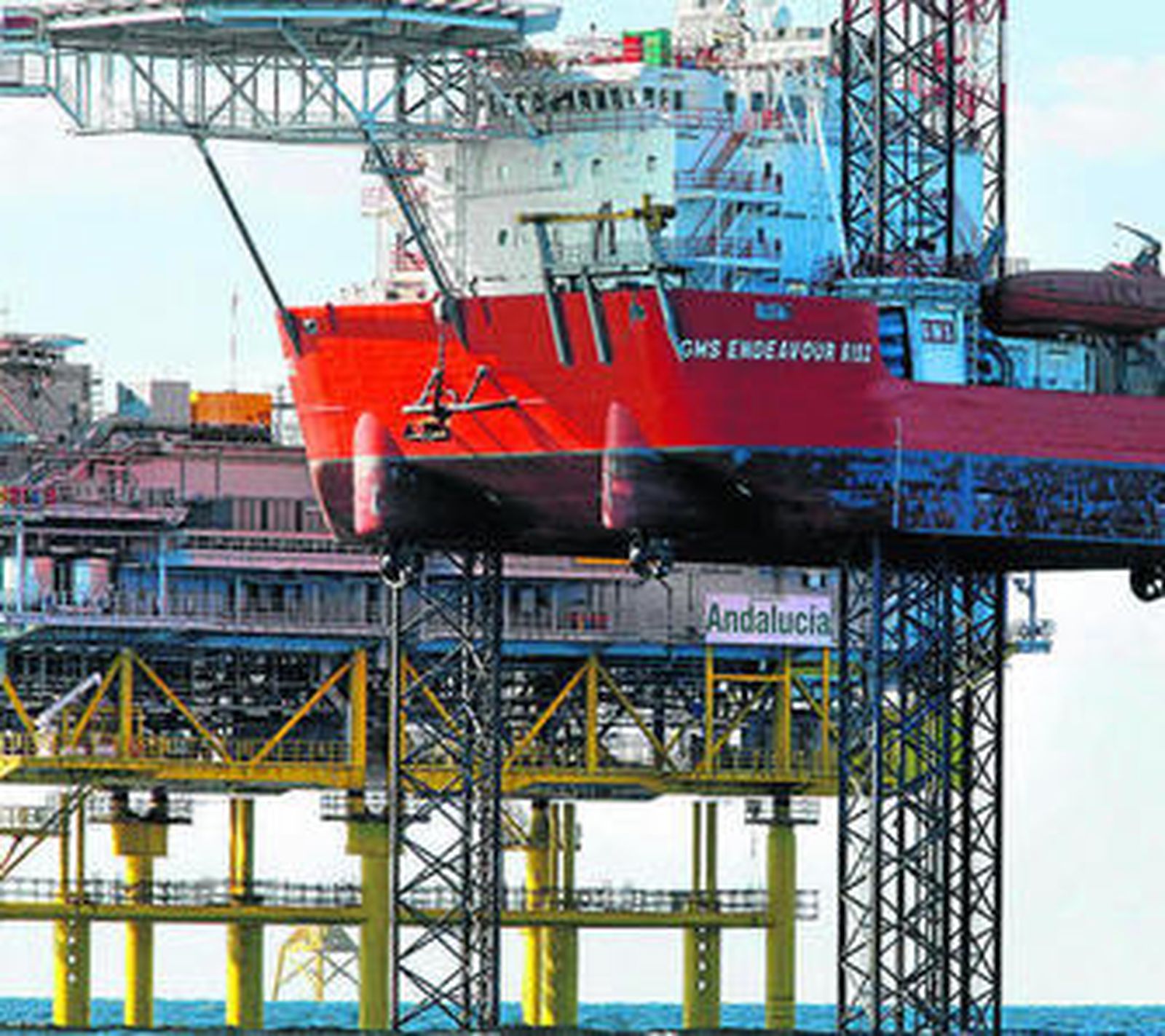 Lo primero que se colocaron, en una fase previa, fueron los seis pilotes, que son unos tornillos gigantes que se anclan al fondo marino. "Éstos tuvieron que dragarse por dentro para poder meter las patas de la jacket", explica Emilio de la Cerda, ingeniero de Instalación de Cimentaciones. Esta estructura de celosía se unió a esos cilindros con una especie de mortero o cemento, que se dejó curar durante seis días. Por último, y en poco más de 24 horas, se colocó encima la plataforma metálica (topside) que aloja los componentes eléctricos y que está dividida en dos módulos debido a su gran superficie y peso (uno de 2.300 toneladas y otro de 2.100).