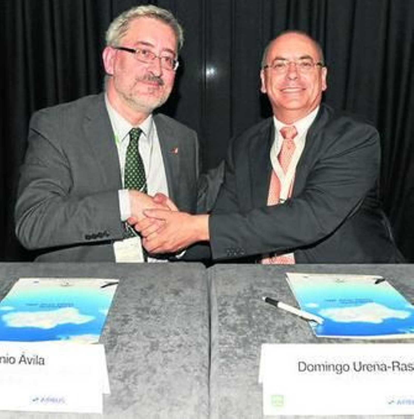 En la feria de Le Bourget también se produjo ayer otra de las noticias del día. Y es que el Centro Bahía de Cádiz (CBC) de Airbus Military en El Puerto (Cádiz) obtuvo un inesperado soplo de aire fresco. La Junta y la empresa presidida por Domingo Ureña firmaron un acuerdo de colaboración estimado en 200 millones (100 aportados por EADS y otros 100 por la Junta, en función del desarrollo del programa), por el que la compañía pondrá en marcha un programa de innovación con fuerte impacto en sus plantas de Andalucía (Tablada y San Pablo, en Sevilla, y el CBC, en el Puerto).