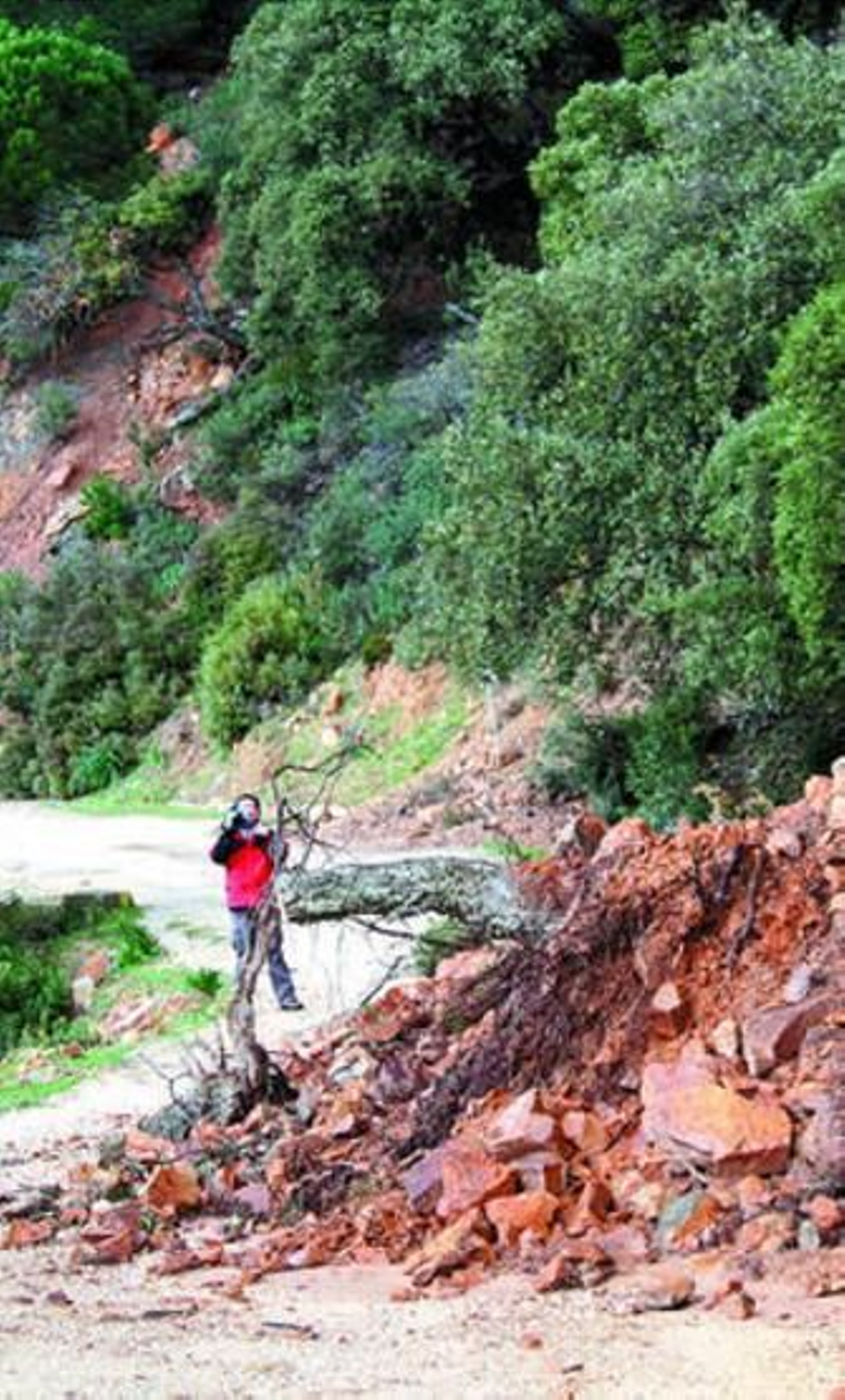 l Las intensas lluvias registradas sobre el Campo de Gibraltar provocaron la aparición de corrimientos de tierras en la campiña tarifeña. Ayer, una máquina retroexcavadora tuvo que retirar toneladas de barro y piedras de grandes dimensiones que bloquearon al menos uno de los carriles que cruzan el Parque Natural de Los Alcornocales a su paso por el término municipal de Tarifa, trabajos que fueron activados desde la Consejería de Medio Ambiente de la Junta.