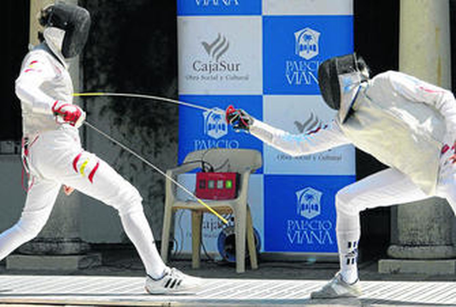 lEl Patio de Columnas del Palacio de Viana fue ayer el escenario elegido para la celebración de una exhibición de esgrima, protagonizada por seis tiradores del Club Círculo de la Amistad. Rodeados de gitanillas, geranios y buganvillas, los participantes en el encuentro exhibieron su gran destreza con el florete, la espada y el sable ante un centenar de personas. Entre el público se encontraban muchos los visitantes de los Patios que aprovecharon su paso por Viana para contemplar la exhibición de esgrima, en la que se fundió a la perfección la técnica con la vistosidad de este deporte. Y es que no todos los días los ciudadanos pueden disfrutar de la agilidad y la destreza de estos deportistas. El silencio y el respeto por la majestuosidad de este deporte tan español fue la tónica predominante durante todo su desarrollo, aunque alguno que otro de los asistentes no pudo evitar su admiración.
