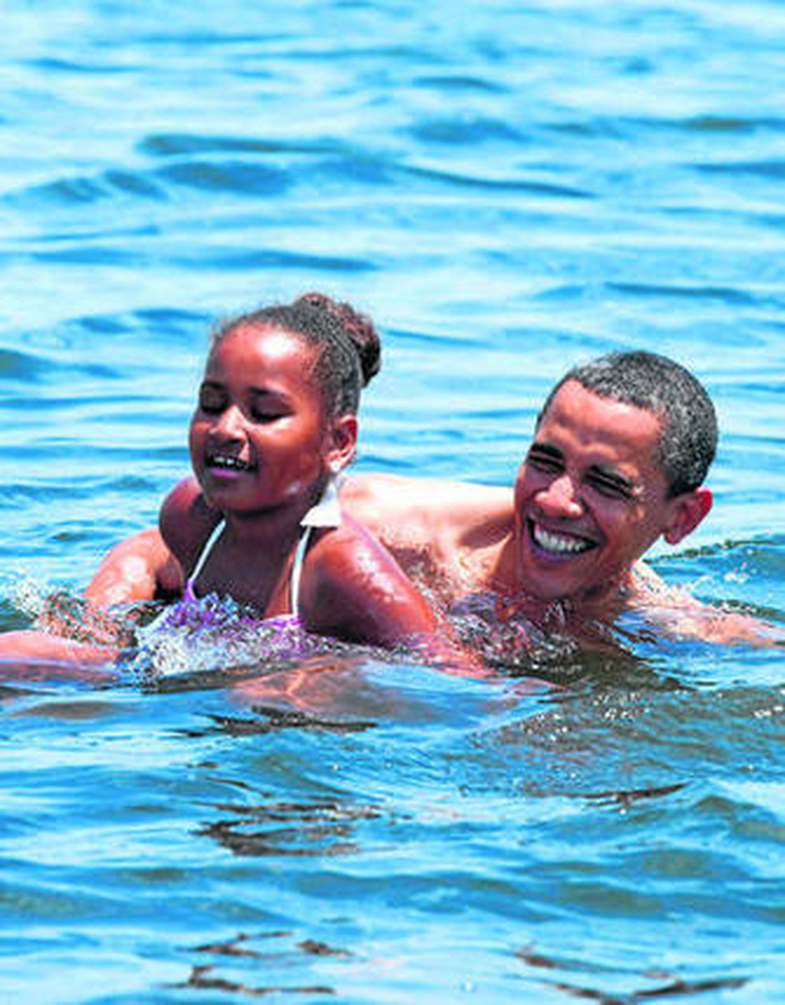 l La Casa Blanca facilitó ayer esta fotografía del presidente Barack Obama y su hija Sahsa bañándose en una playa de Florida, en una de las zonas afectadas por el vertido continuo de la plataforma petrolífera de BP. Hay que admitir que Fraga, que se dio un baño en Palomares con la misma intencionalidad, fue un pionero en esto de la comunicación política. Obama pasa unos días de vacaciones en Florida, para contribuir a que el turismo vuelva a estas aguas.