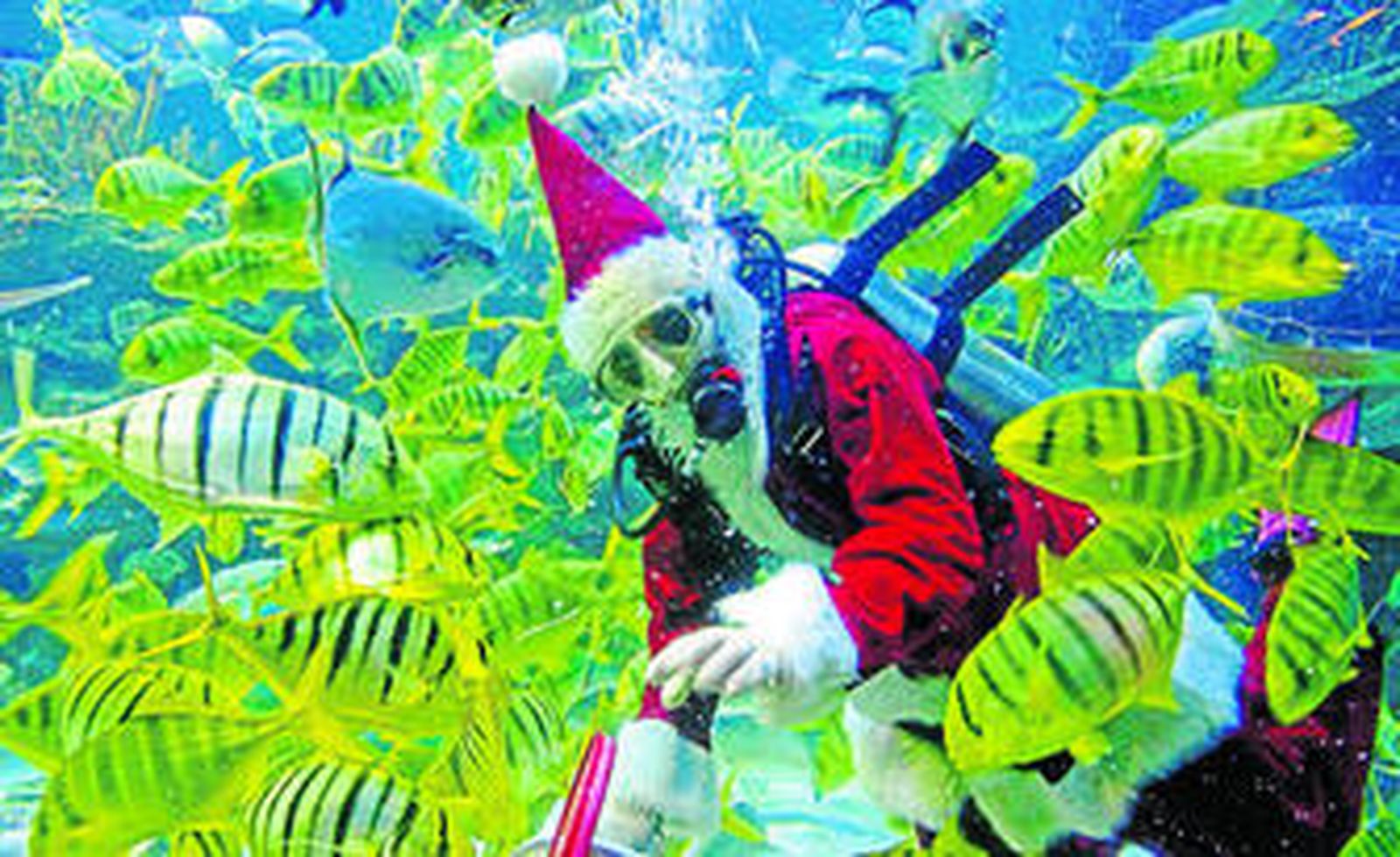 l Con la llegada de la Navidad afloran las imágenes más curiosas de Papá Noel. Todos compiten en ingenio. Todo sea por la felicidad de los niños. Como prueba de ello, este Papá Noel acuático que da de comer a los peces durante un espectáculo navideño en el Acuario KLCC en Kuala Lumpur. Y es que en esta ciudad, a pesar de que es musulmana, las celebraciones de Año Nuevo se viven al modo occidental. Durante la festividad es muy típico comer pato de Pekín, embutidos y mandarinas, todo ello en grandes cantidades. Además, los vecinos suelen decorar sus casas con faroles rojos, banderas y fuegos artificiales. En homenaje al elevado porcentaje de población china que hay en Malasia, también se celebra el Año Nuevo chino, que tiene lugar a finales de enero y principios de febrero.