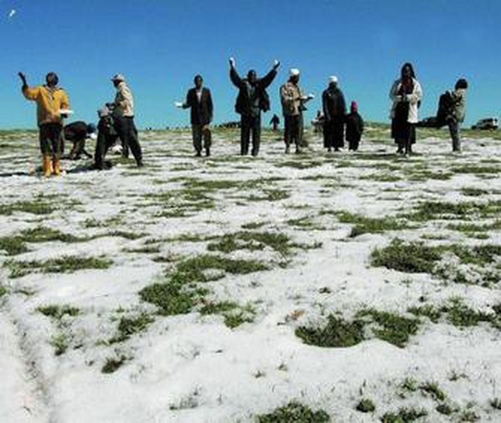 lEs raro. De hecho, ayer se quedaron todos sorprendidos cuando, de repente, cayó una intensa granizada. Y es que para muchos de los vecinos del pueblo Nyahururu era la primera vez que veían caer granizo del cielo. Se trata de una pequeña población desértica a unos 220 kilómetros de la capital keniata, Nairobi. Después del suceso meteorológico, que sorprendió a todos en la zona, familias enteras se desplazaron hasta la pequeña ladera donde el granizo cuajó para jugar con él y disfrutar de un bien que allí escasea, el agua. La verdad es que en Kenia escasea prácticamente todo. A pocos kilómetros de Nairobi ya no hay carreteras sino simples vías de tierra en las que aquellos que tienen coche, que son la minoría, se juegan la vida a diario porque no hay carriles. Pero para ver la nieve muchos se arriesgan.