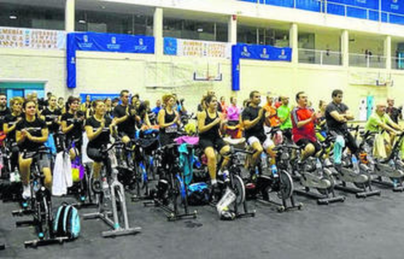 l Ni la lluvia ni el temporal han impedido que 300 deportistas solidarios se dieran cita el pasado domingo en el Pabellón de Deportes, Moisés Ruiz, en el 'Maratón A Toda Vela'. Todos ellos quisieron responder con su compromiso solidario a esta iniciativa con la que ha colaborado Diputación Provincial. En total la jornada ha consistido en cinco sesiones de: Ciclo Indoor, Aerobic y Bailes latinos que se sucedieron de la mano de monitores de A Toda Vela y de los gimnasios Belmonte, Centro 360, Cuqui Line, Indalo Sport de La Cañada, New Line, Gym Tonic, Quelmont, Worldfitness de Benahadux, Kronos, SportGime y de Almería Baila. La Diputación provincial colaboró con la cesión de instalaciones y el montaje y traslado del material. Además, 55 empresas financiaron el evento solidario.