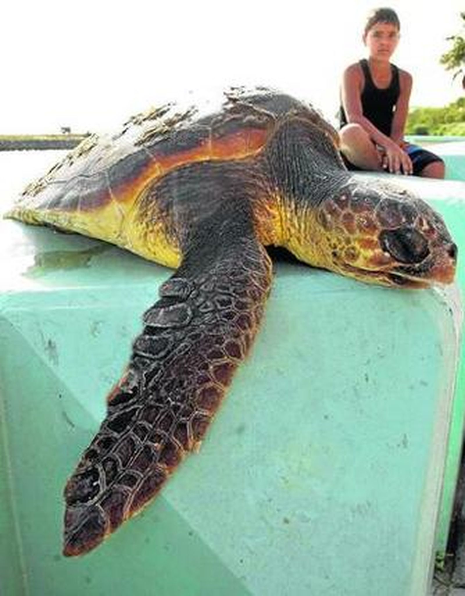 l La marea trajo ayer hasta el litoral de Poniente de La Línea de la Concepción el cadáver de una tortuga boba de grandes dimensiones. El cuerpo del animal quedó varado en la orilla y levantó la expectación de los bañistas, especialmente de los más pequeños. Los ciudadanos avisaron a la Policía Local que envió a varios de sus efectivos para proceder a la retirada del animal. No es la primera vez que en las playas linenses aparecen tortugas o delfines muertos.