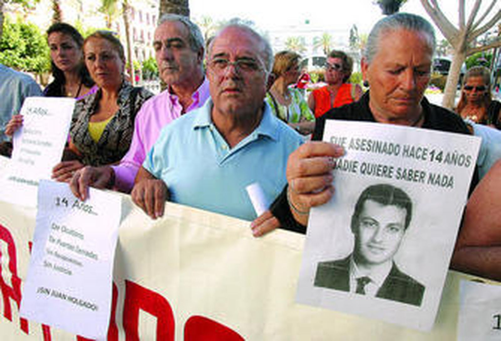 l Una veintena de personas, con Antonia Castro, la madre de Juan Holgado, a la cabeza, recordaron ayer con emoción al joven jerezano asesinado hace catorce años en una gasolinera de la avenida Martín Ferrador y expresaron su protesta por el archivo judicial del caso, que como es sabido, sigue sin resolverse tras más de una década desde el crimen. Ayer, en el día de San Juan, Antonia Castro convocó una concentración de protesta en la plaza del Arenal, a la que se sumaron representantes del grupo político PSA y de la federación de asociaciones de vecinos 'Solidaridad'. En la manifestación, la madre de Juan Holgado anunció que está dispuesta a iniciar una huelga de hambre en Madrid la próxima semana, ante el Ministerio de Justicia, para reclamar que se reabra el caso.