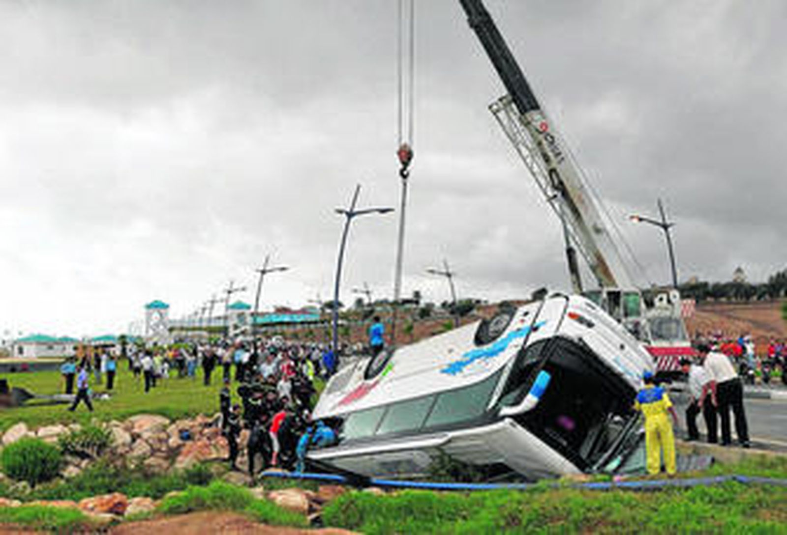 lUna excursión terminó en tragedia para un grupo de portugueses que se dirigían a la ciudad marroquí de Tetuán. Nueve turistas murieron y más de 30 resultaron heridos, 11 de ellos de gravedad, en un accidente de circulación registrado ayer junto a la localidad de Castillejos (Fnideq), cerca de la frontera con la ciudad española de Ceuta. El siniestro se produjo cuando el autocar, cuyo conductor era español, se dirigía hacia Tetuán como parte de la escala de un crucero luso amarrado en Ceuta y procedente de Málaga. Según la versión oferecida por el conductor, el vehículo volcó al atravesar un falso puente de canalización de agua de unos tres metros de altura, después de derrapar en una bajada a consecuencia de la lluvia caída a primera hora del día.
