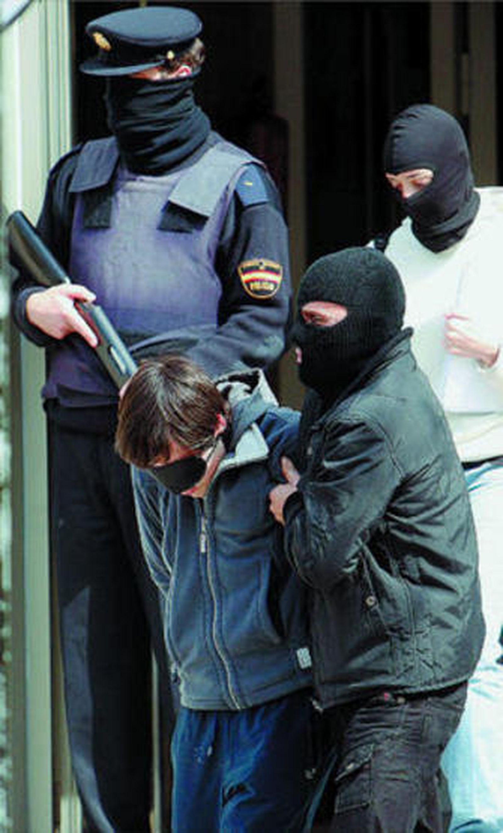 l Ocho personas fueron detenidas durante la madrugada de ayer en Hernani en una operación ordenada por el juez Baltasar Garzón contra el entramado de la organización juvenil ilegalizada de la izquierda abertzale Segi. La Policía registró los domicilios de los detenidos, además de locales relacionados con los implicados, acusados de formar un grupo de apoyo a ETA. En la foto, agentes de la Policía Nacional trasladan desde la Subdelegación del Gobierno en San Sebastián a una de las personas detenidas.