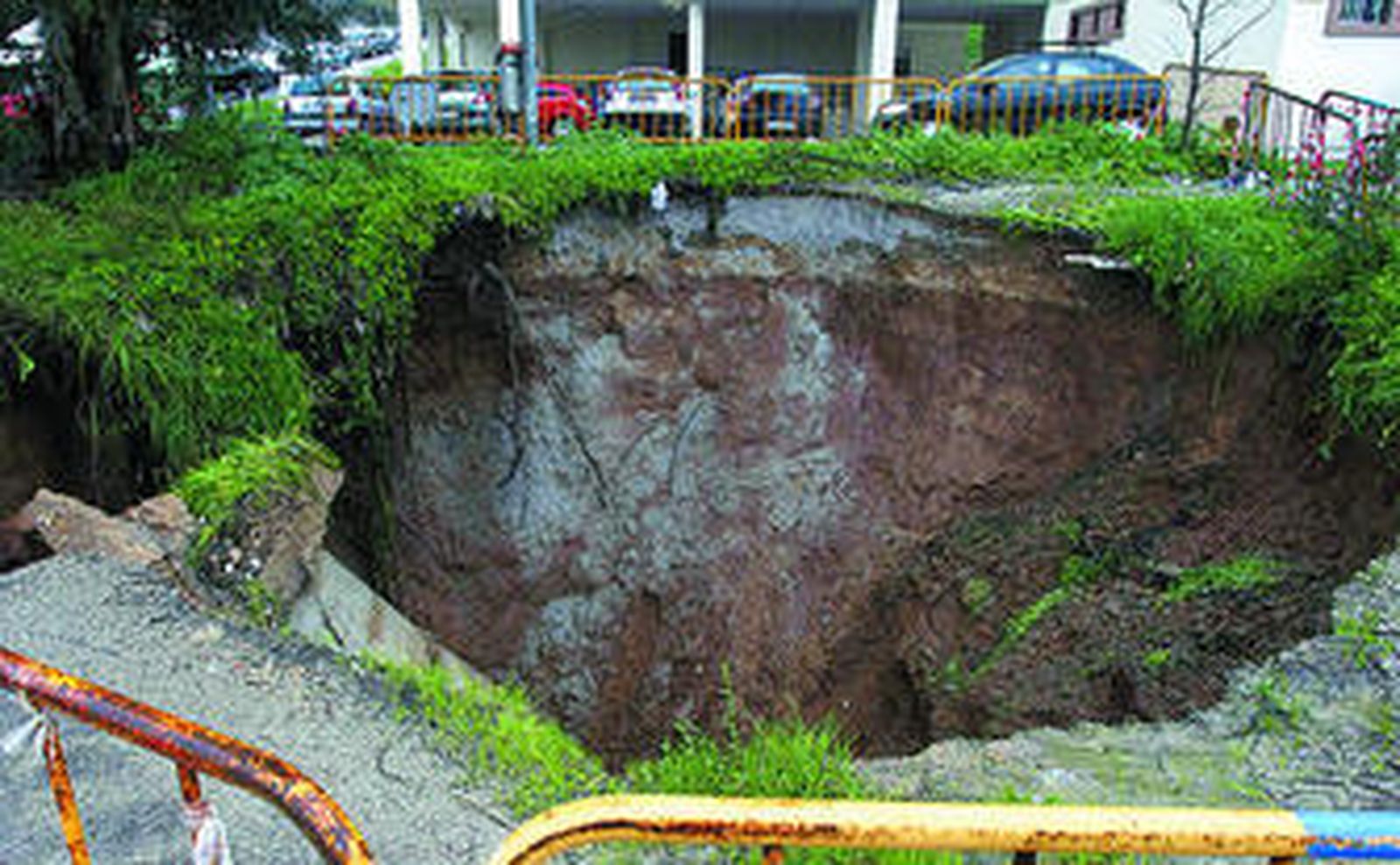 l Las lluvias que estos días se registran en el Campo de Gibraltar han vuelto a ocasionar problemas en Algeciras. En la calle Mónaco, ubicada en la barriada de San José Artesano, se produjo un deslizamiento de tierra que ha terminado con la aparición de un enorme socavón al paso del colector perimetral de aguas pluviales que discurre por la zona y que engancha La Concha con La Granja. Se trata de la misma red de aguas pluviales que causó los desperfectos denunciados en la pista deportiva del patio del instituto Levante. Los vecinos de los bloques colindantes han alertado ya sobre el riesgo del gran agujero, que ha tenido que ser vallado para evitar posibles accidentes. Mientras tanto, los responasables de Emalgesa se encargan de evaluar los daños para establecer un plan de ejecución que acabe con su reparación. Las 186 familias que residen en el lugar se quejan también de los numerosos boquetes que presenta el asfalto de la calle.