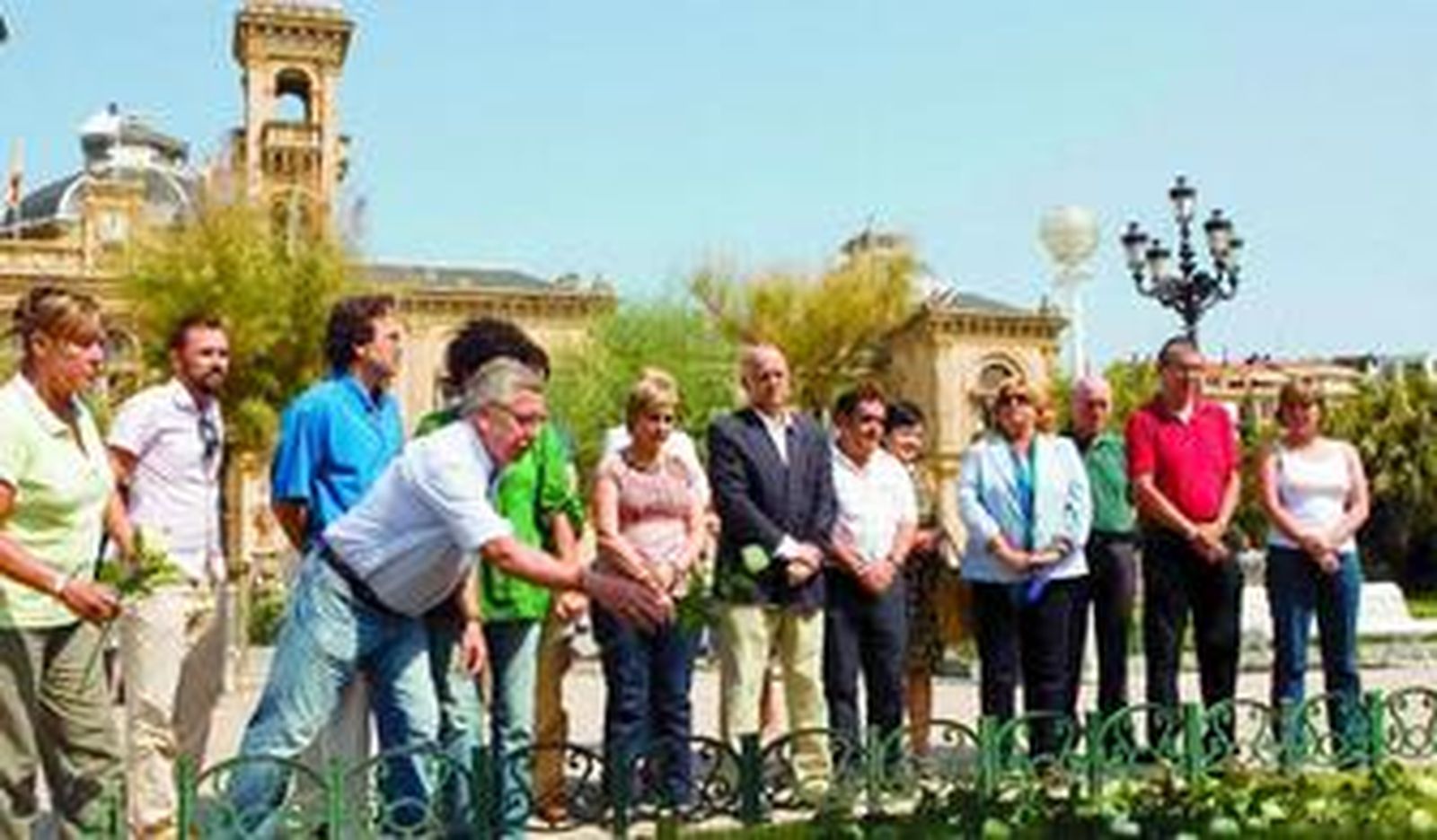 lEl Ayuntamiento de San Sebastián recordó ayer a las veinticinco personas asesinadas en atentados atribuidos a Iñaki de Juana Chaos durante una ofrenda floral en la que el alcalde, Odón Elorza, exigió al etarra un "cambio de actitud moral y un gesto de reconocimiento del dolor causado para formar parte de la ciudadanía". El acto, celebrado ante el monolito en memoria de las víctimas del terrorismo, en los jardines de Alderdi Eder, contó con la asistencia de concejales y representantes de todos los partidos con representación en el consistorio donostiarra: PSE, PNV, EA, PP y EB-Aralar.