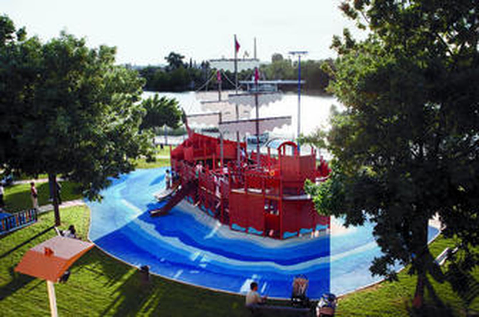 lAyer se abrió al público infantil el nuevo parque ubicado en el paseo Juan Carlos I, en los bajos de Torneo y paralelo a la ribera de la dársena. Con cierre metálico y vigilancia para evitar los efectos del vandalismo y con césped artificial en su superficie, los niños podrán sentirse personajes de Salgari o de la canción del pirata de Fernando Quiñones en este barco pirata que lleva al giraldillo de mascarón de proa. El Ayuntamiento prepara la apertura de otros espacios para el juego infantil en la Alameda de Hércules y en la plaza de San Juan de la Palma. En el Consistorio vencieron ese tabú del arquitecto que diseñó la Alameda, convencido de que esos espacios temáticos son "guetos de edad". Los niños que se suban al barco pirata podrán escuchar las batallitas de la Expo que les contarán sus padres y abuelos.