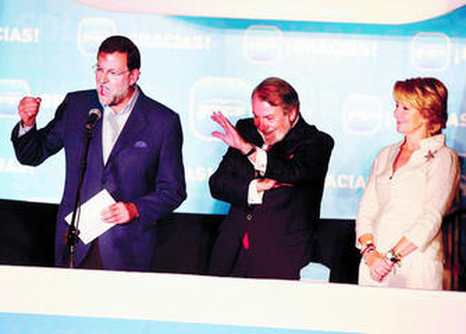 La presidenta madrileña destacó además el triunfo del PP en la mayoría de los distritos de la capital y dijo que no había hablado con el alcalde, Alberto Ruiz-Gallardón, sobre los resultados electorales. "Creo que estaba en México o volando hacia Madrid".
